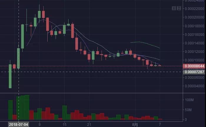 好吧,闲话少续,言归正传。作为人工智能第一币,PAI自带光环,上市的时候关注度非常高,只差被吹天上去了。自从7月2日PAI在火币上线,短短4天涨幅就达到519%。7月10日取得最高价格0.00022319BTC,较开盘价大涨548%。