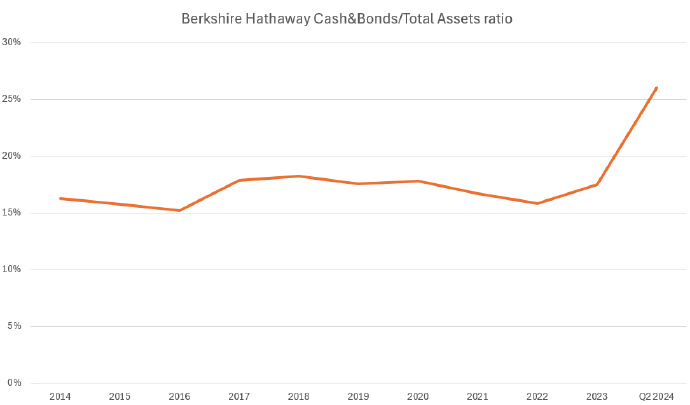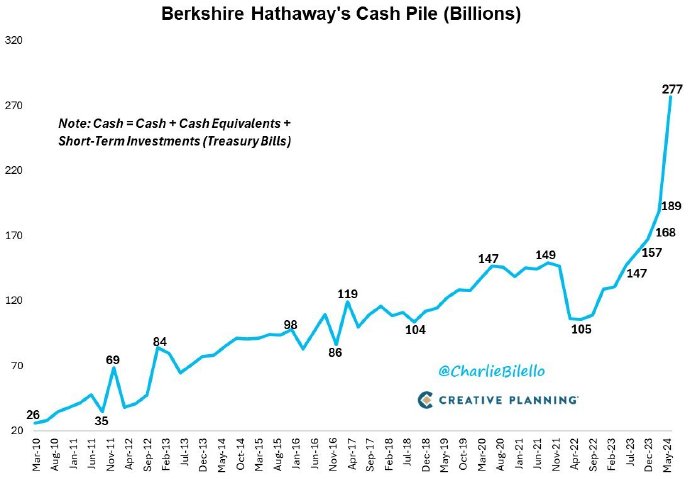 巴菲特-伯克希尔·哈撒韦的3张图beatht666 (27)in #cn • 2 years ago (edited)图1:第2季度抛售的股票数量是最近几年来最多的; 图2:现金储备则达到了巅峰,2770亿美金之巨; 图3:持有现金和债券占总资产的比例超过25%; 从行动的征兆来看,巴菲特正在避开熊市的到来,全球资本市场的回调在即。 #buffett