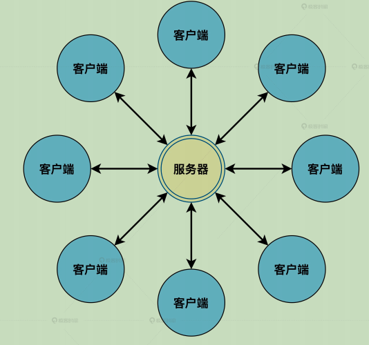 可以清晰认识到这是一个中心化的网络架构,其服务能力完全取决于中心的服务器,如果中心服务器因意外导致宕机,那整个服务就瘫痪了。整个应用的可用性通常依赖于服务器的活性,与客户端无关。