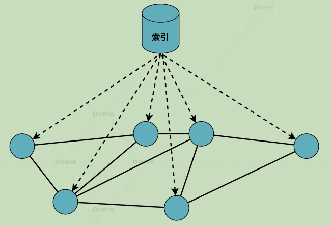 引入了一个中心索引节点,用来保存其他所有节点的接入信息。新节点的加入首先将自身信息传入中心节点,从而换取已在网络中其他节点的连接信息,随后与其他节点组成点对点网络,这种结构与我们使用搜索引擎进行信息检索是类似的,但存在单点故障的可能性,一旦中心索引节点宕机,新节点将无法加入网络。