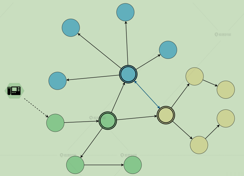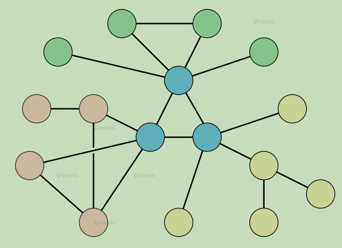 整个网络由多个种子节点形成主干网络,而其他普通节点则连接到某个种子节点,这样就形成了整体分散局部集中的混合结构。