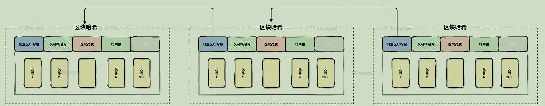 包含该区块的基础属性,重要的属性主要有 4 个:前置区块哈希用于区块间的关联,交易根哈希用于区块与交易的关联,区块高度用于标记当前区块在区块链中的位置,方便定位,而时间戳记录了区块打包的时间。区块体:
