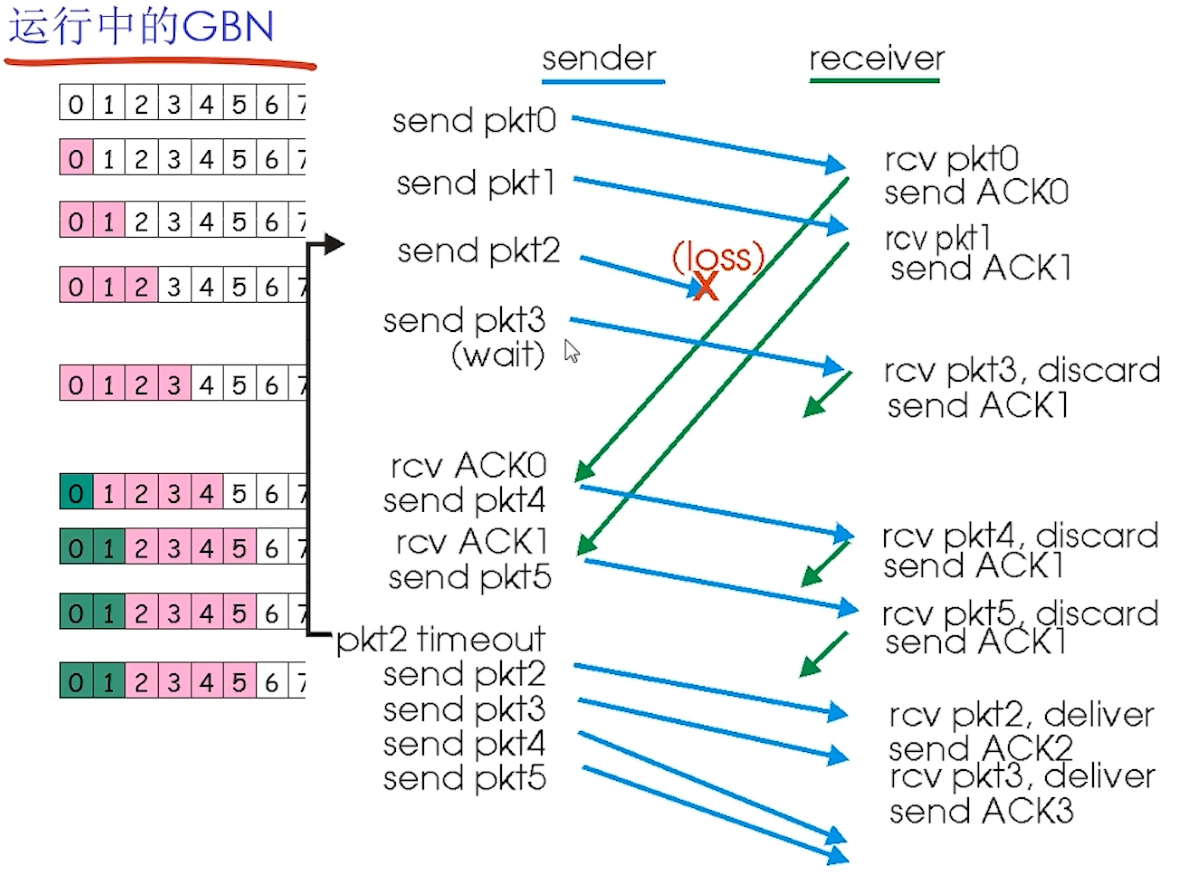 - GBN的运行发送流程示例