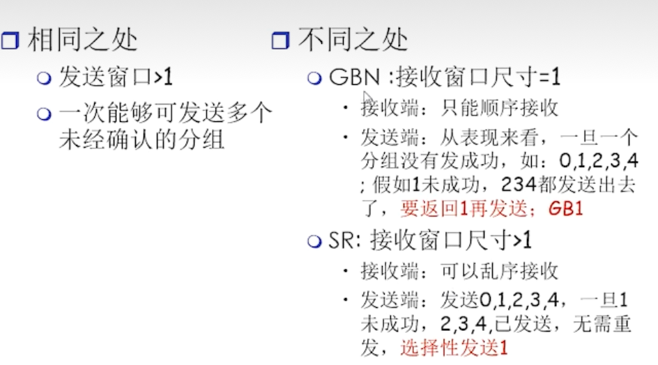 GBN 与SR(选择重传) 的比较
