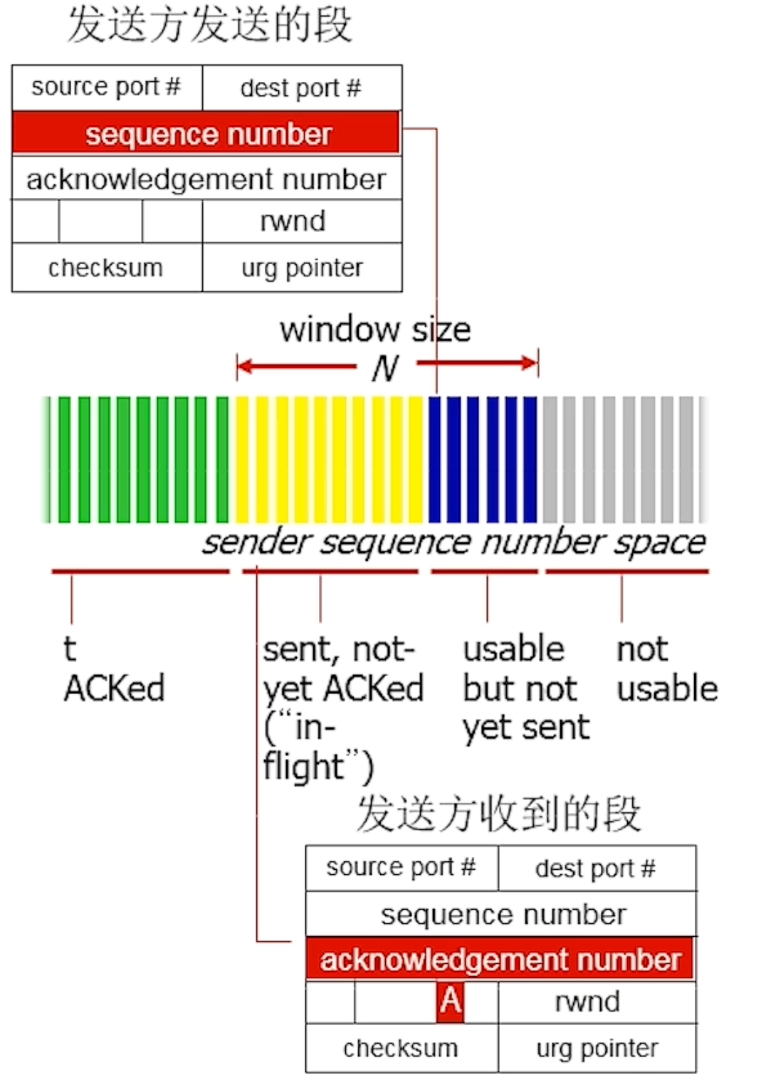 - 发送方限制未确认字节的个数 <= 接收方发送过来的rwnd值