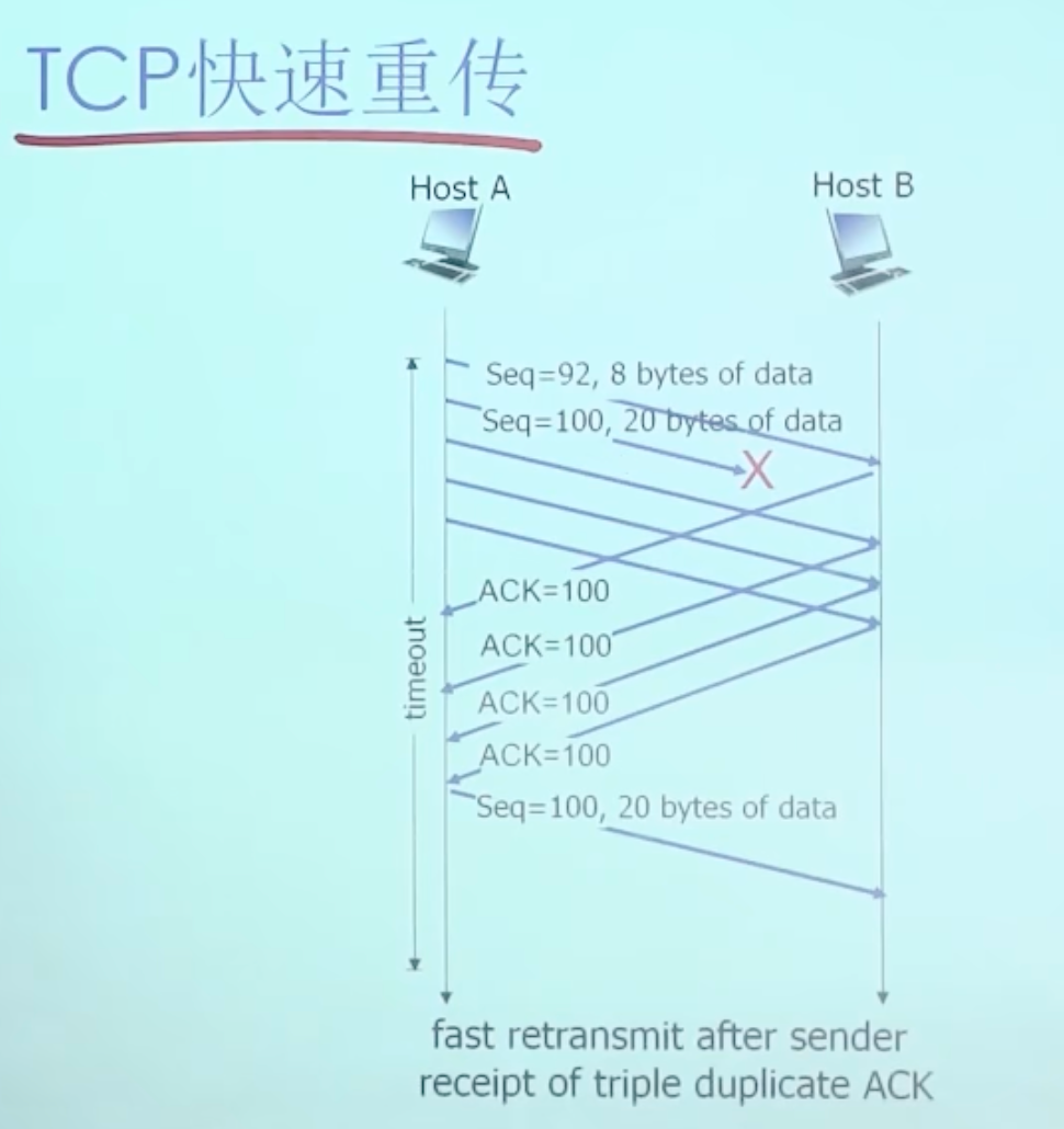 - 超时(只重发最早未确认的段,类SR)