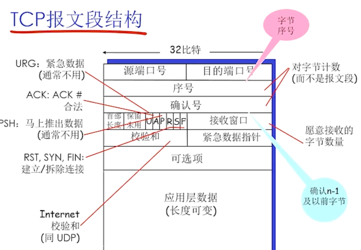 - 序号nextseq为报文段首字节的字节流编号