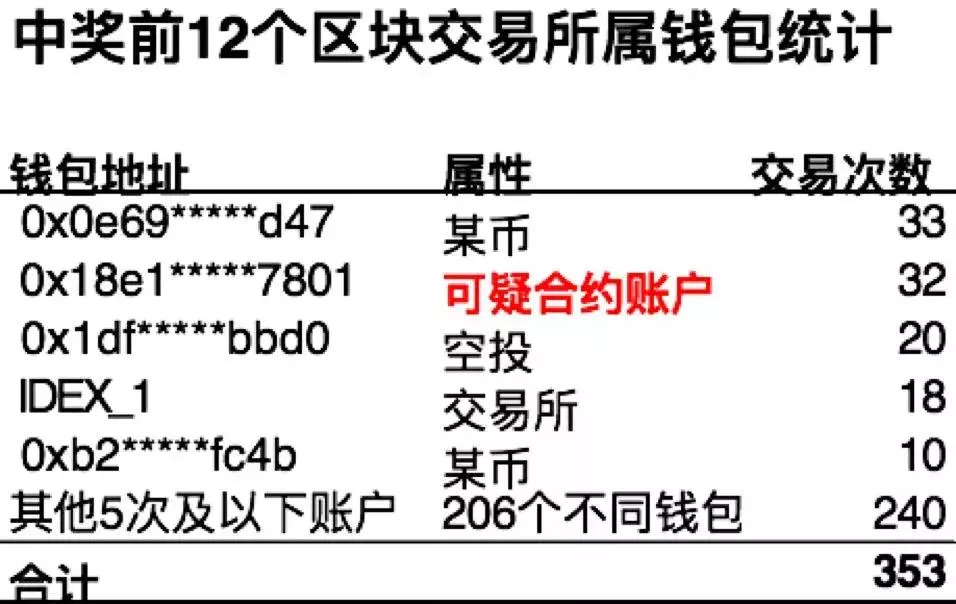 首先,我们把中奖前以太坊12个区块的一共353笔交易全部提取出来。经过各维度分析,我们有了以下发现: