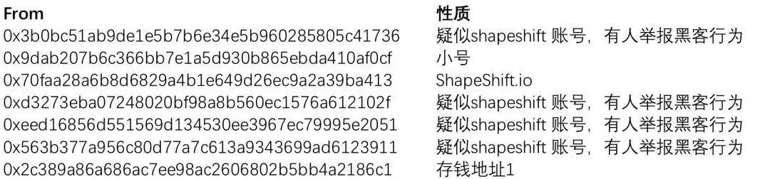 而这些账户除了5哥自己的账户之外,都是使用了疑似ShapeShift的钱包,而ShapeShift因难以被追踪而被广大区块链黑客喜爱和使用。