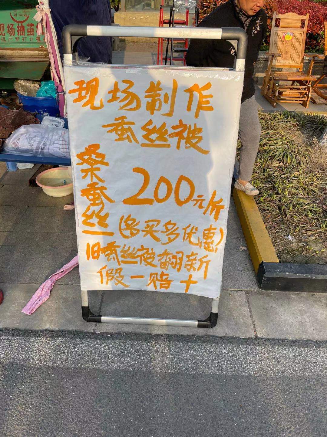 这两天小区来了个翻新蚕丝被的。就跟他们聊了两句。据老板说,想进小区做这个生意物业首先要看各种营业执照,满足这些基本要求后就跟物业谈价钱,最后是缴纳了5000元才进来搭了棚子。物业没有限制他们这5000元能在小区待多久。翻新蚕丝被的老板说,整个小区的住户就这么多,通常待10~30天没有业务他们就要流动到其它小区了。