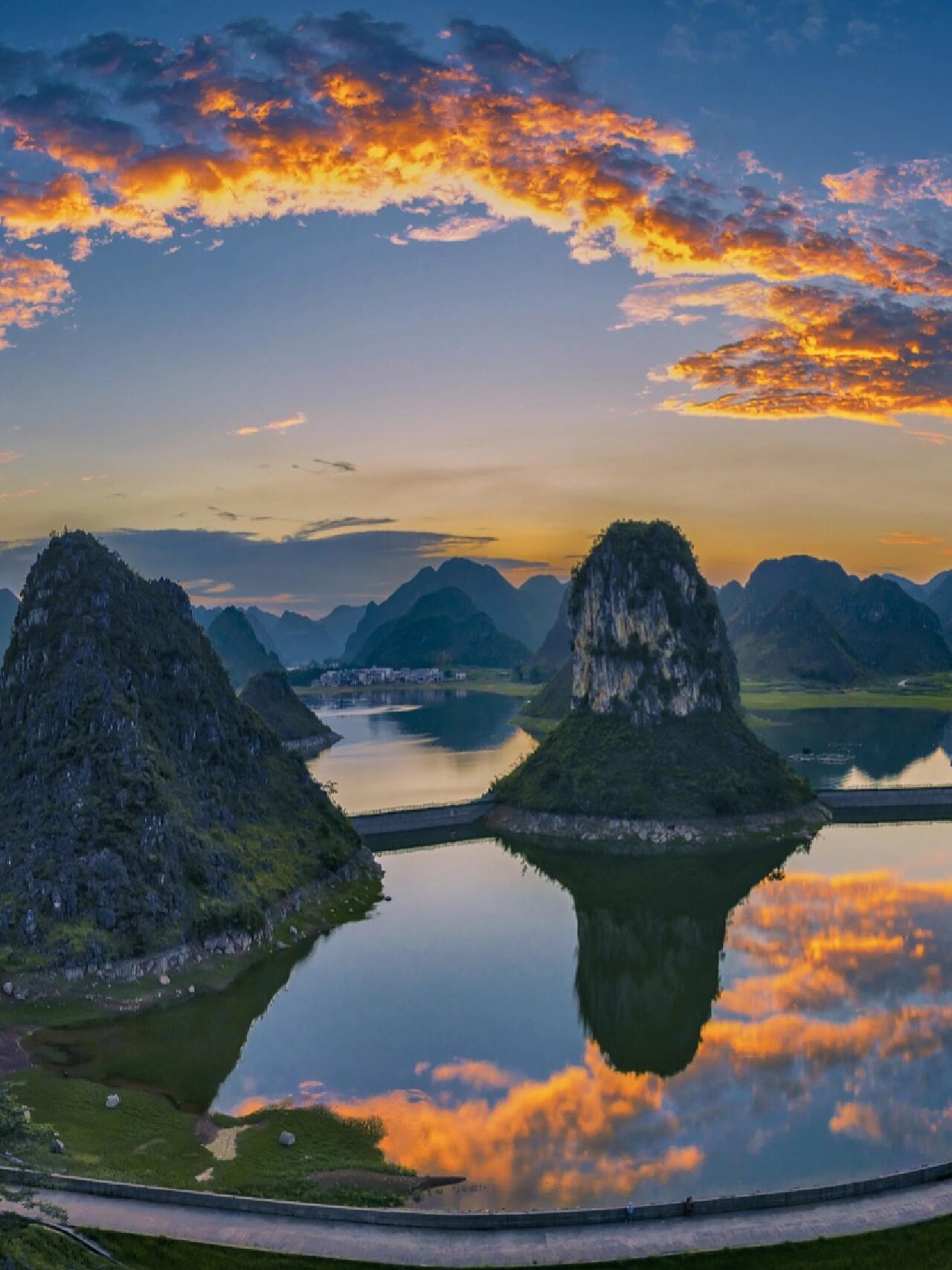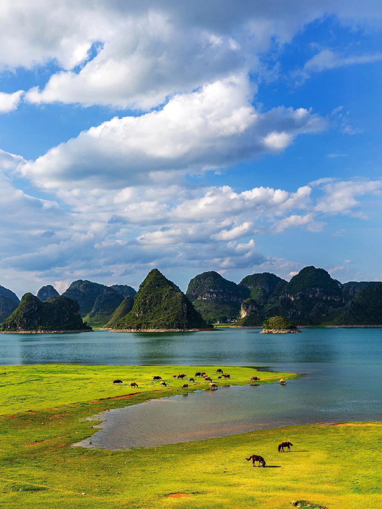 被誉为水上桂林,属于喀斯特地貌湖泊,一步一景,如同闯入画中。推荐坐船游玩,途中能看到十多座形态各异的山峰⛰。🚲喜欢骑行的朋友,还可以环湖骑行💦,全程31公里,需要3-4小时