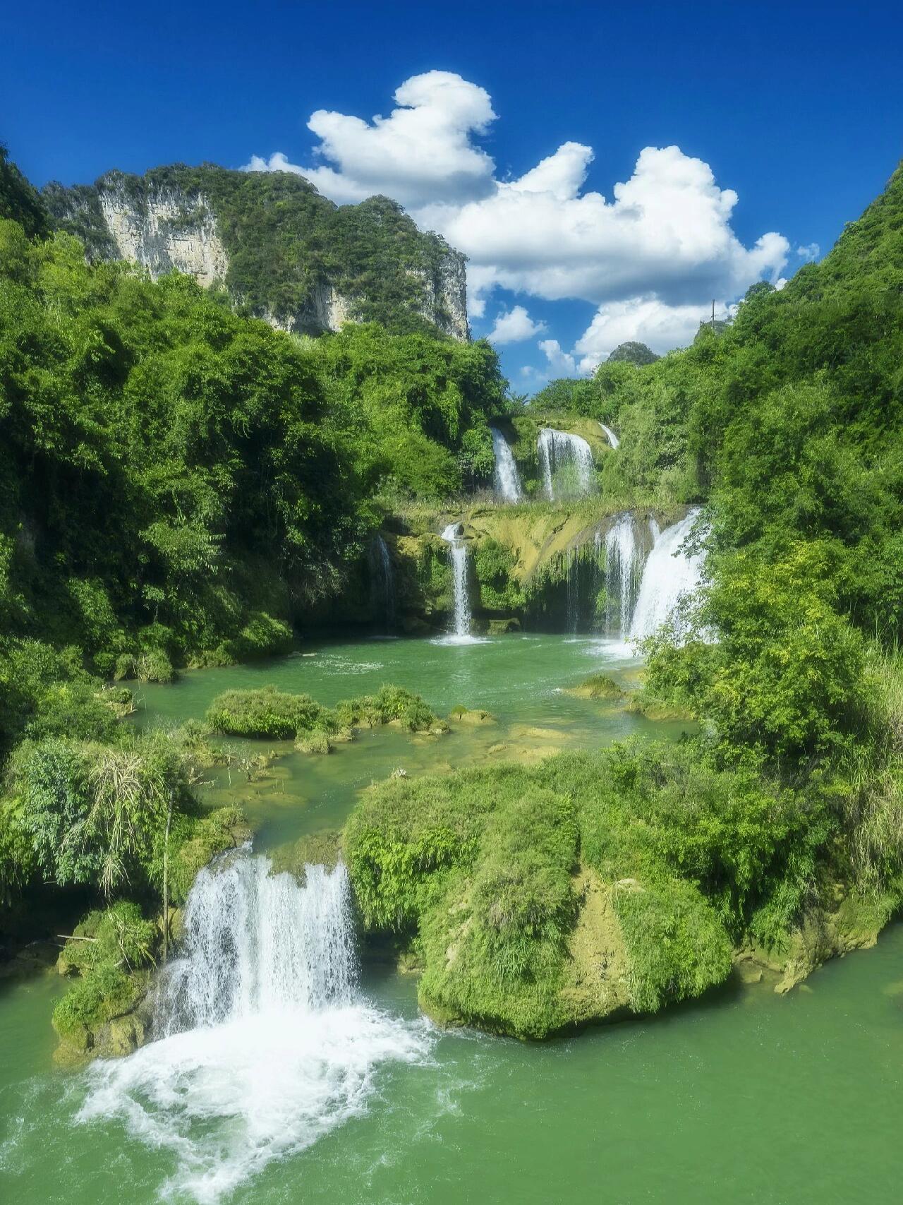 它由三个30多米宽、20多米高的梯级瀑布相连而组成,这三个瀑布名为爱布、马屯、惠泽。💦瀑布周围山恋清翠,在这里打卡有种自带仙气的柔美📸