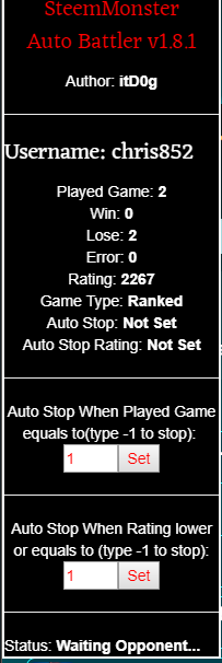 最重要的是,我的朋友 @itdog 他有一個Steem Monster的自動戰鬥插件,可以方便讓你掛在這完成你的任務及沖Rank.