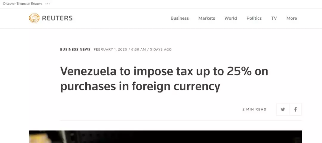 人民拼命积攒美元,抵抗通胀。甚至在委内瑞拉的首都加拉加斯,都有70%的交易都是以美元计价。哪怕要征收25%的税,还是要用美元。《彭博社》在上个月还报道了这个事情。