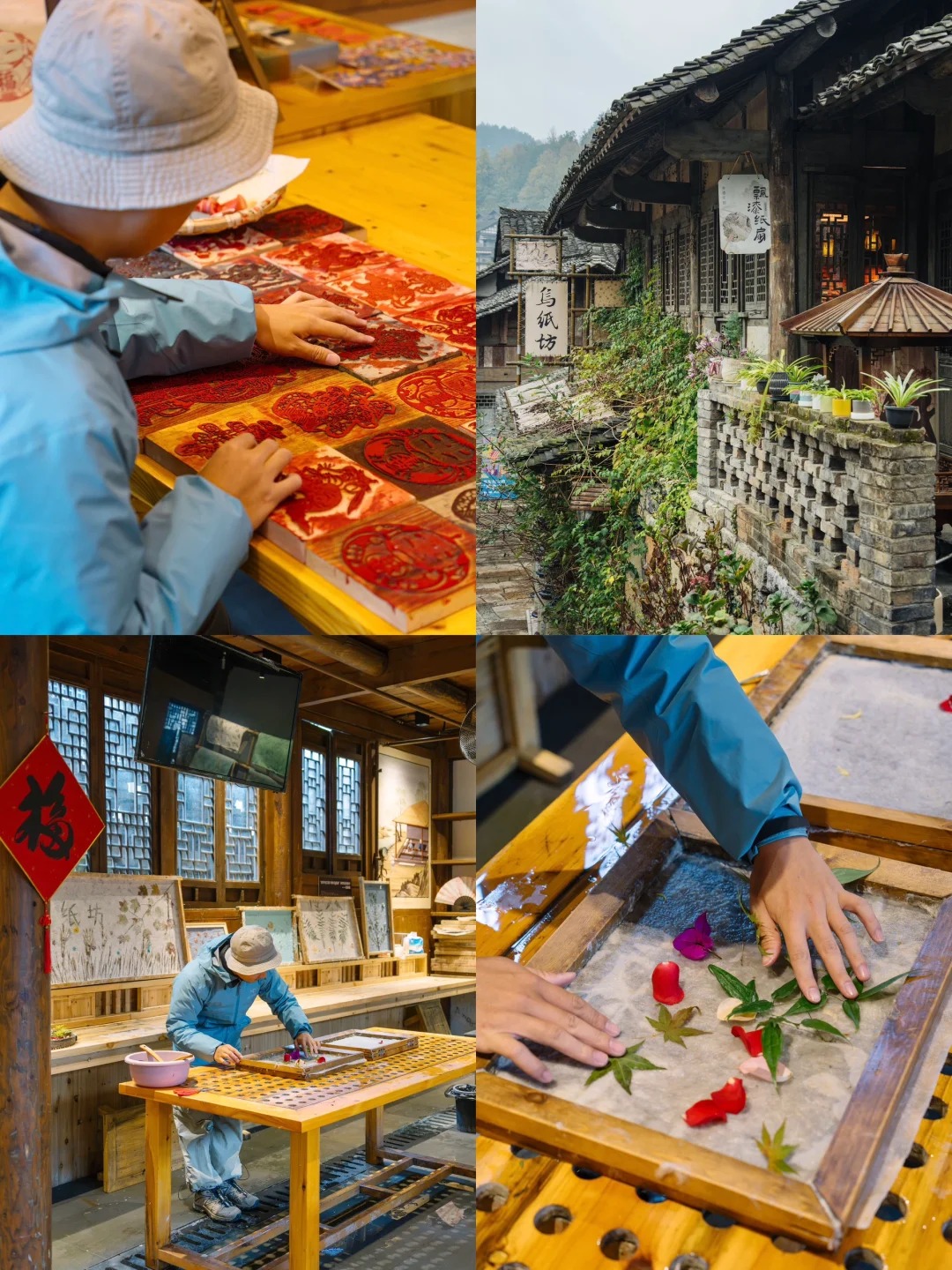 📸 乌纸坊:从门口的斜坡俯拍整个景区,古建筑群一览无余;走进乌纸坊,还能亲手体验纸艺制作。