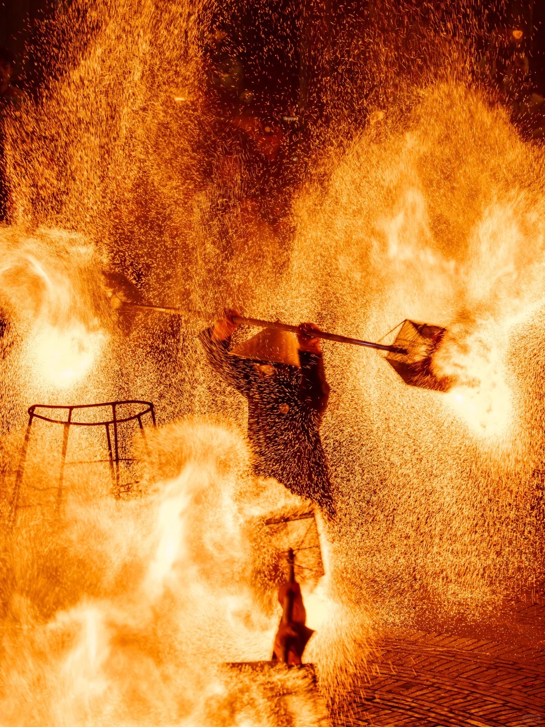 ⭐️ 打铁花:梯田广场上的非遗传统技艺,火花四溅,绚丽夺目。