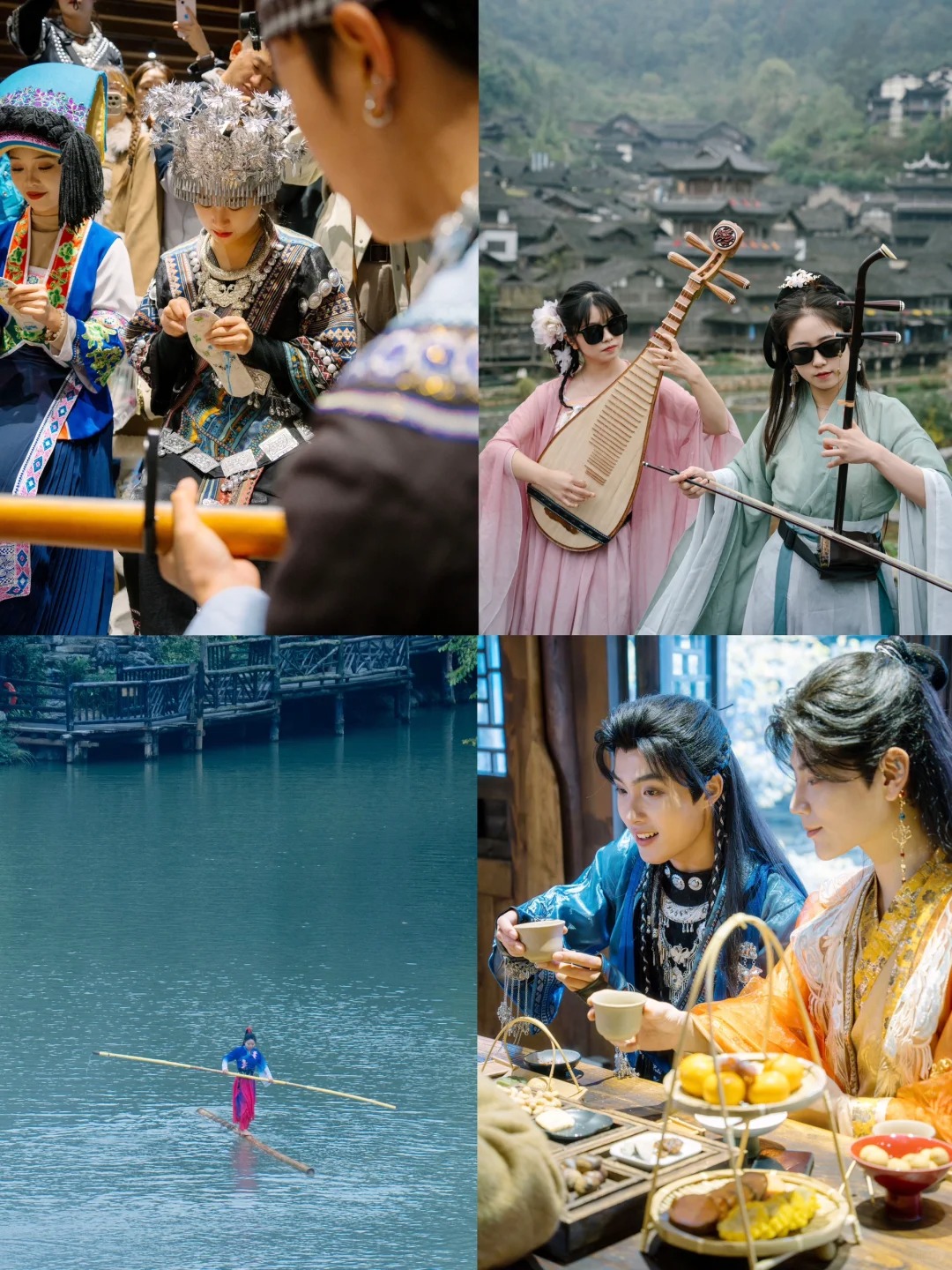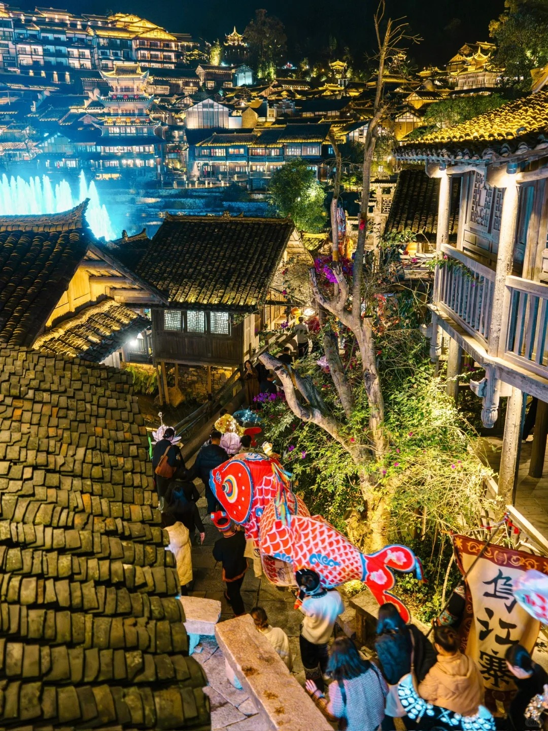 乌江寨不仅风景绝美,还是一个深藏少数民族文化的宝地。这里的 围炉煮茶、吊锅宴、鱼灯巡游、火壶表演,每一项民俗体验都让人流连忘返。在寨子里住上一晚,仿佛穿越回了贵州千年前的生活。