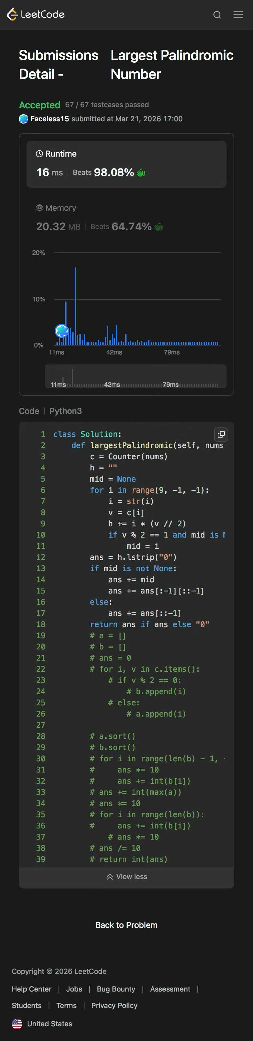 带娃刷题第405天 最大回文数ericandryan (78)in #cn • last month #leetcode #tutorial #algorithms #math #blog #programming #coding