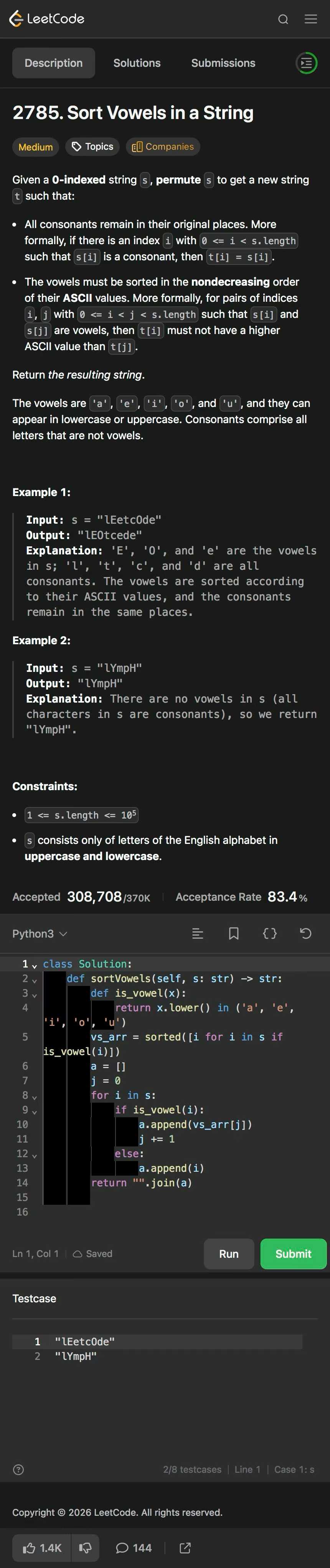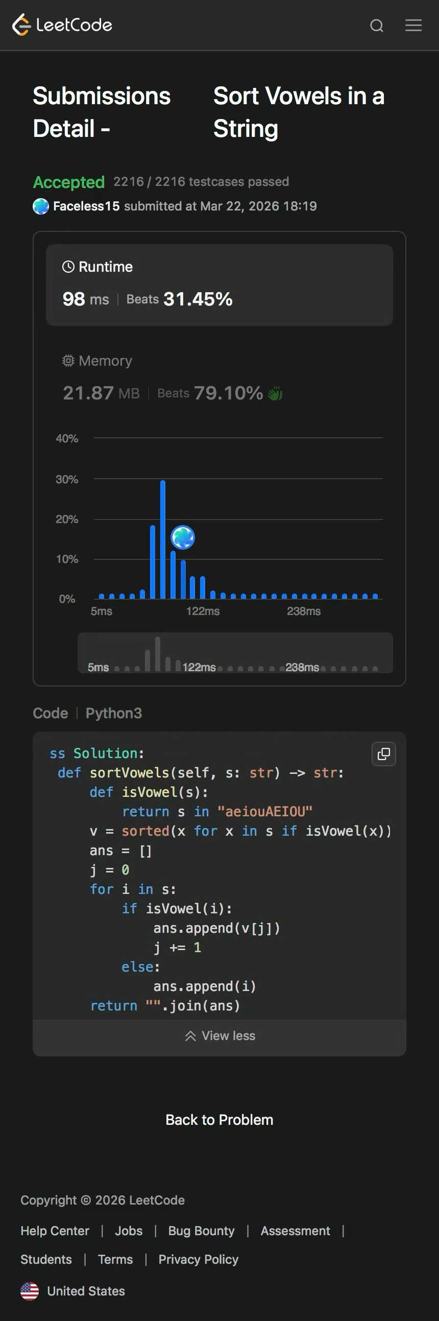 带娃刷题第406天 排序元音之母ericandryan (78)in #cn • last month #blog #tutorial #leetcode #algorithms #programming #coding #daily