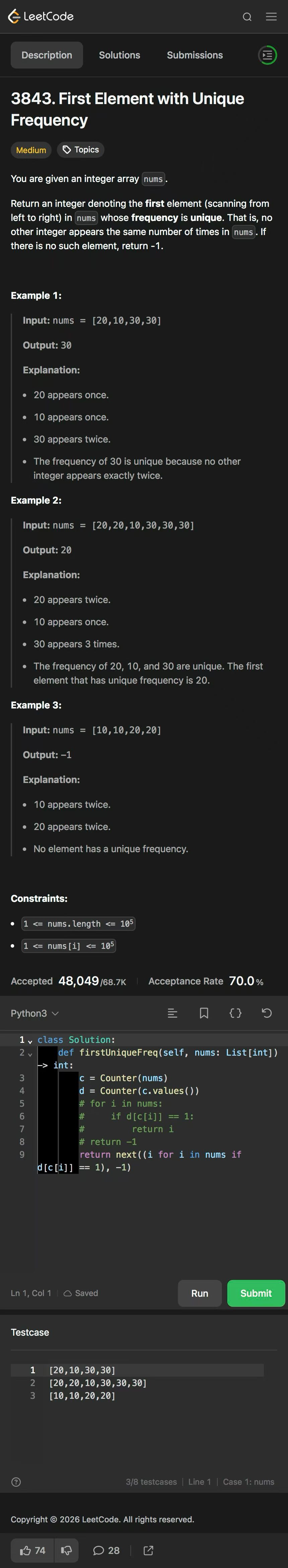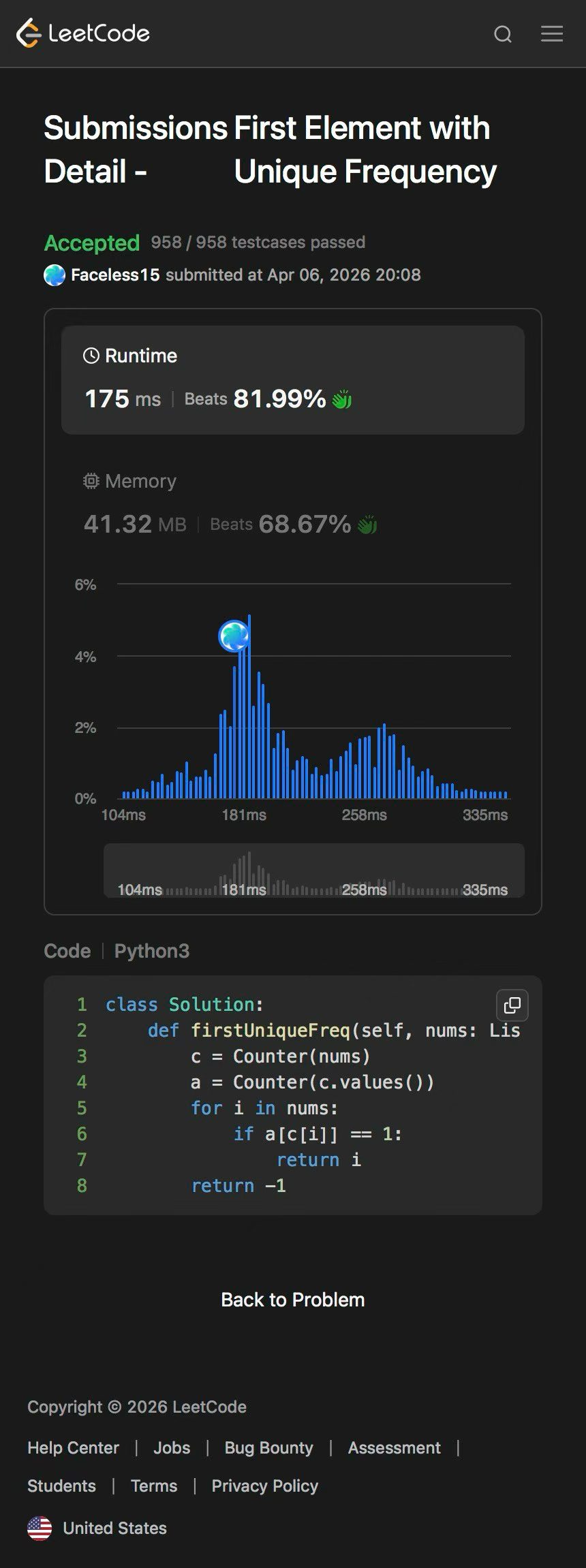 带娃刷题第421天 出现频率唯一的第一个数