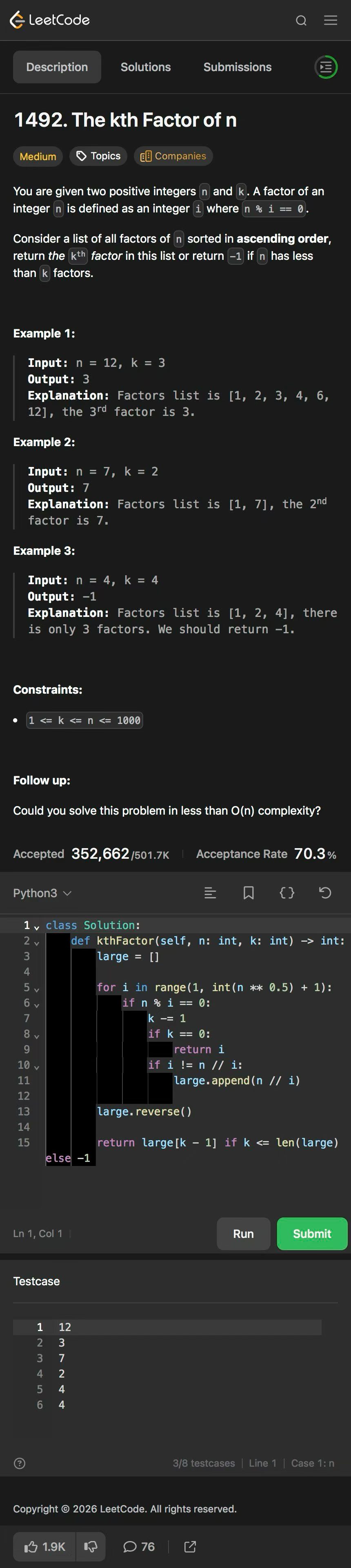 带娃刷题第433天 二刷 第K个因子 O(1)空间 O(sqrt(n)) 时间ericandryan (78)in #cn • 10 days ago Kth Factor #leetcode #tutorial #algorithms #programming #coding #math #factor