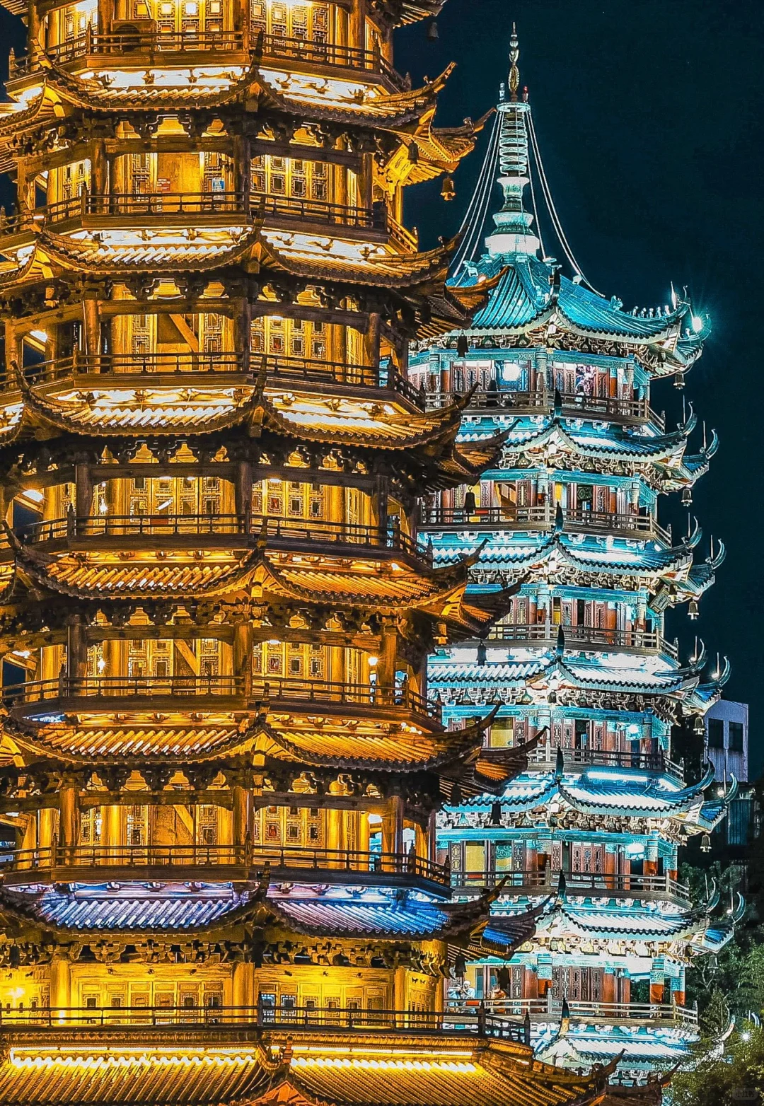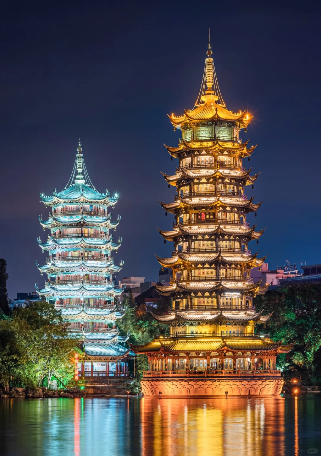 原来这就是日月同辉啊!!!gaaity (36)in #cn • 2 years ago 在桂林总要留一晚来这里看看吧!! 真的有被日月双塔惊讶到👏 金色的塔是世界最高的铜制塔 银色的塔是琉璃塔 两座塔辉煌、皎洁交相辉映 相得益彰 简直太好看!! 📍日月双塔文化公园 🎫开放式的公园 无需门票; 登双塔需购票 💰单人票35 💰双人票56 🕐亮灯时间是19:00-22:00 一定计划好时间!!千万别错过呀!!! 📷拍照机位 就是围着湖边走 边散步边拍 很多树影缝隙间取景真的很好看 需要长焦镜头哦!!