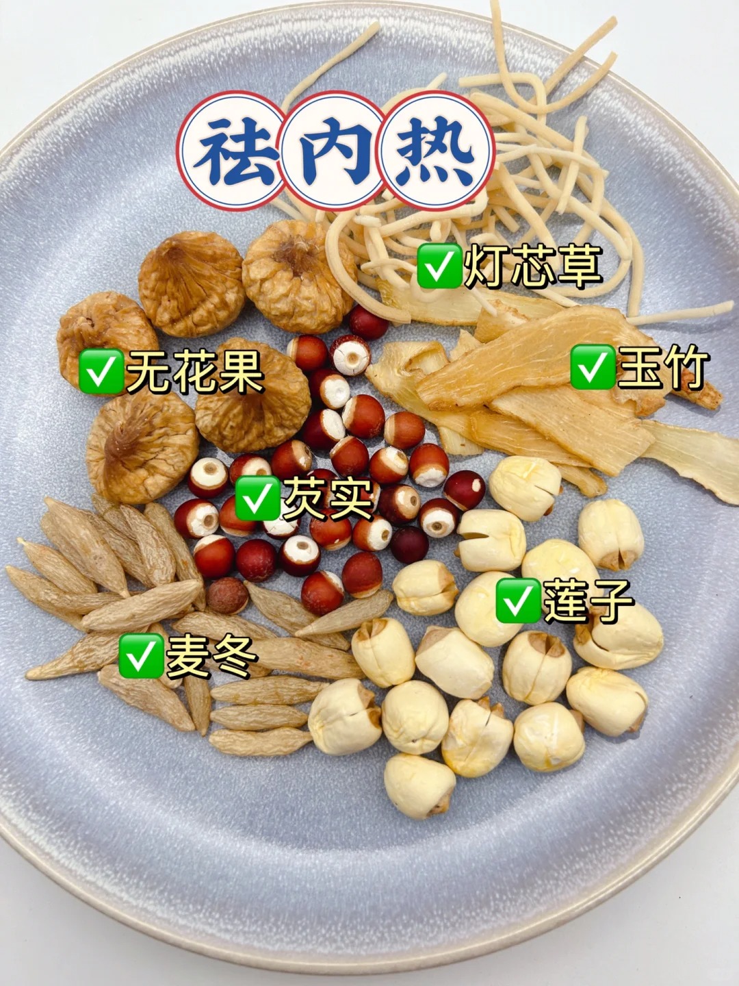 食材:燈芯草、芡實、蓮子、麥冬、玉竹、無花果