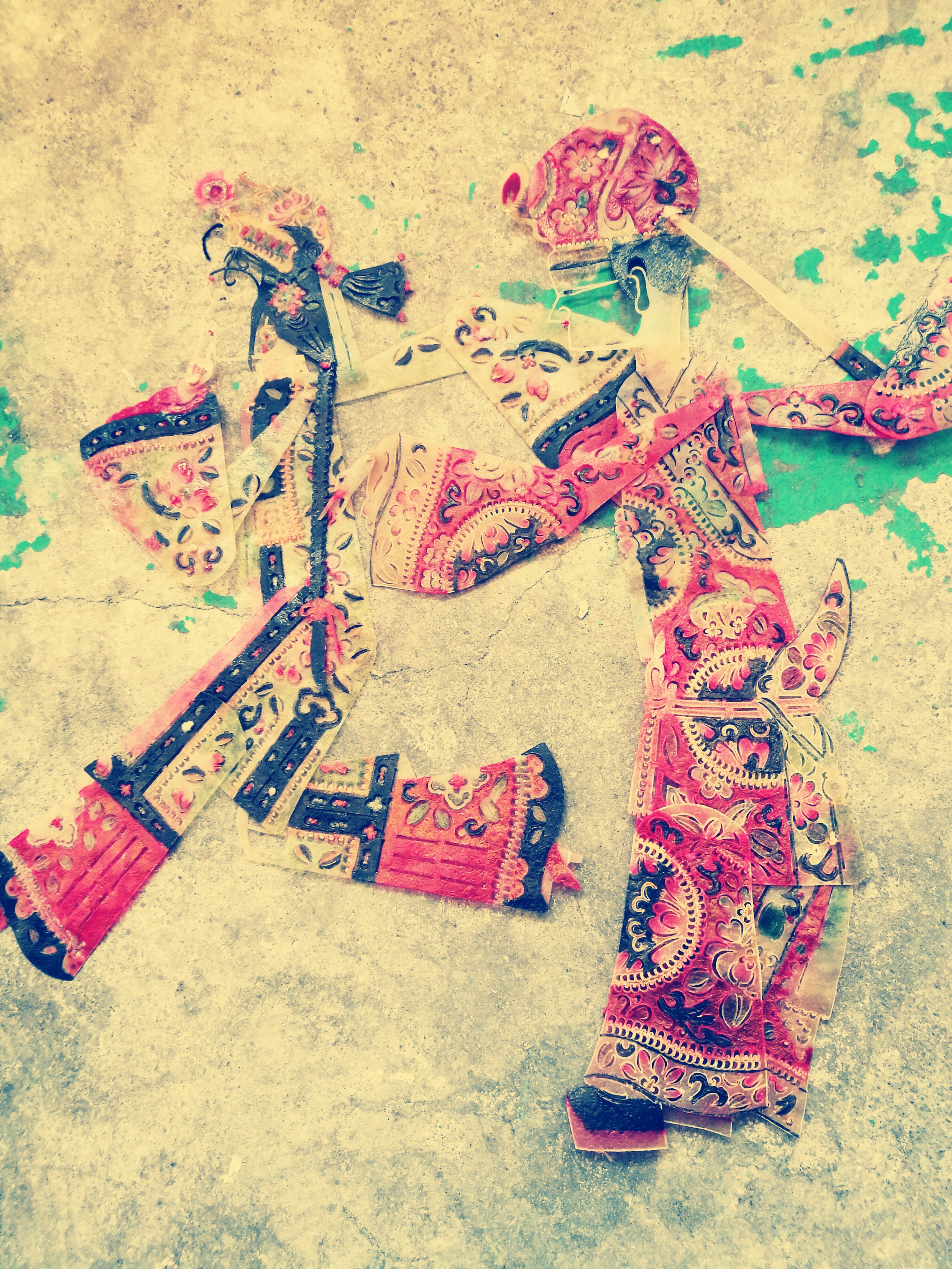 简简单单的两个皮影和一堆的小故事剪纸。