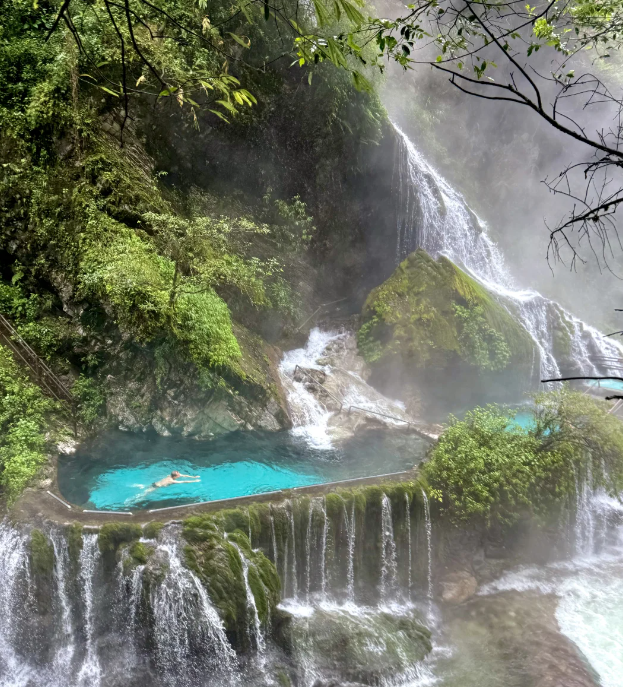世界最大!!纯天然!大峡谷温泉瀑布