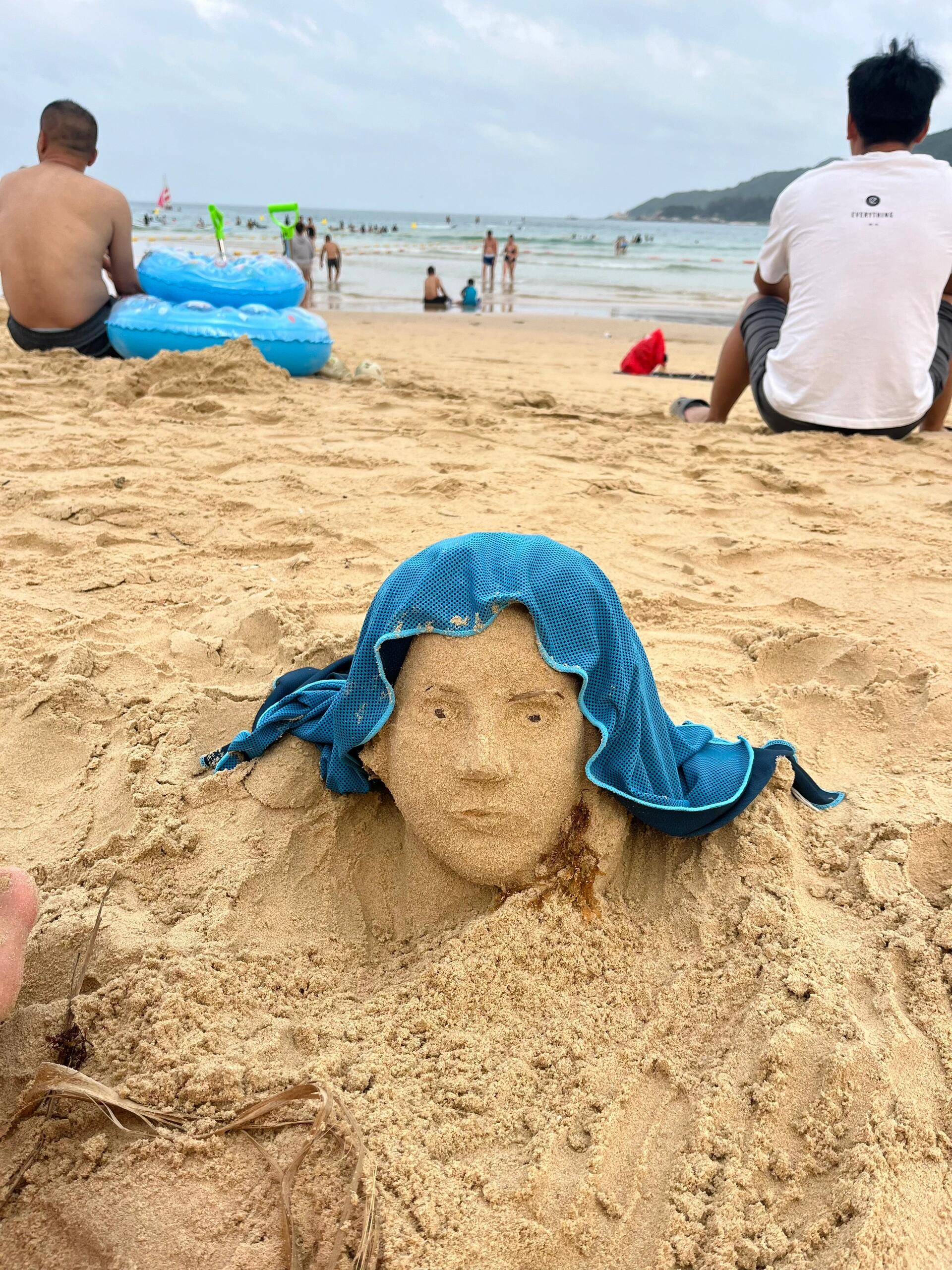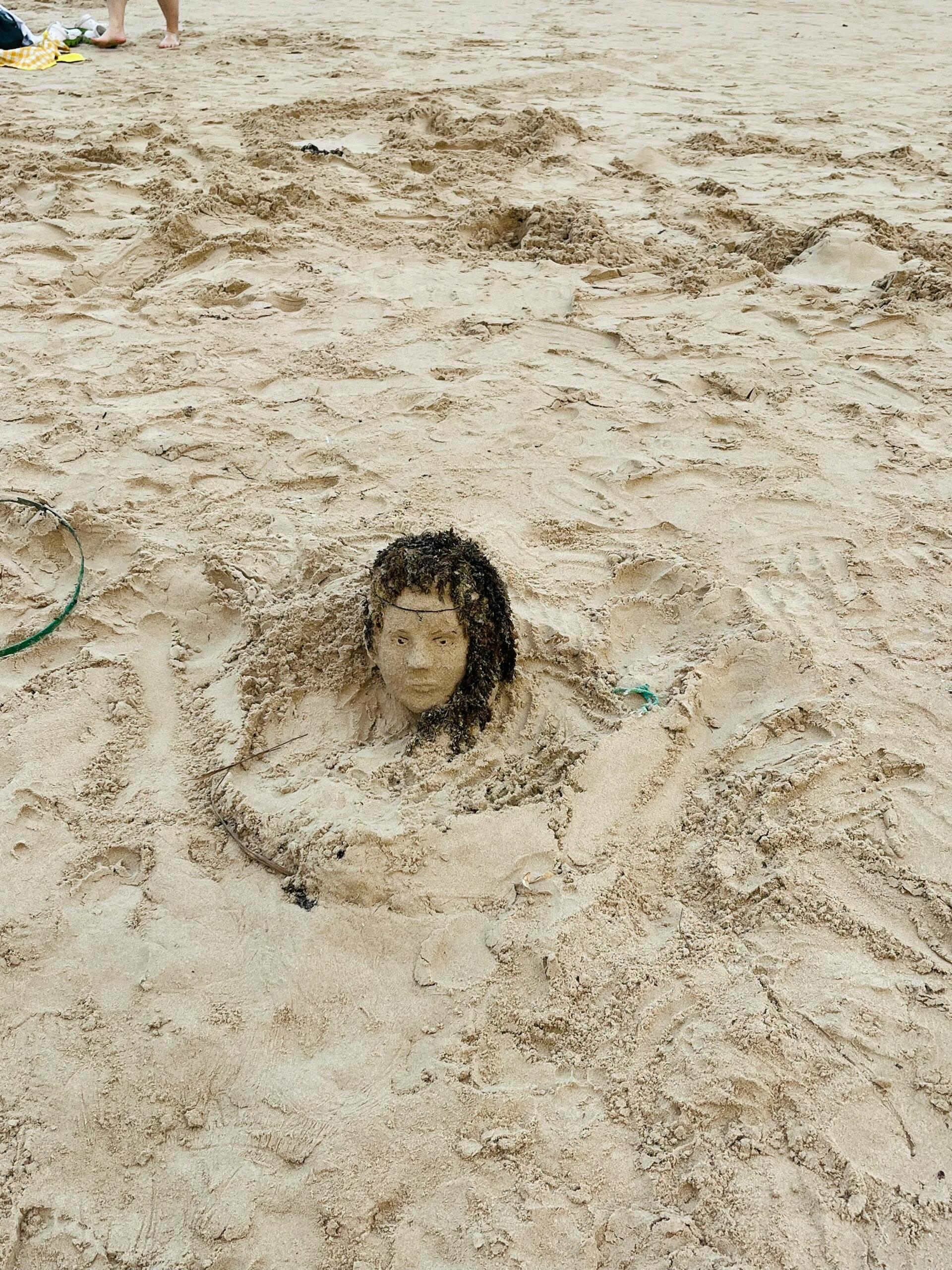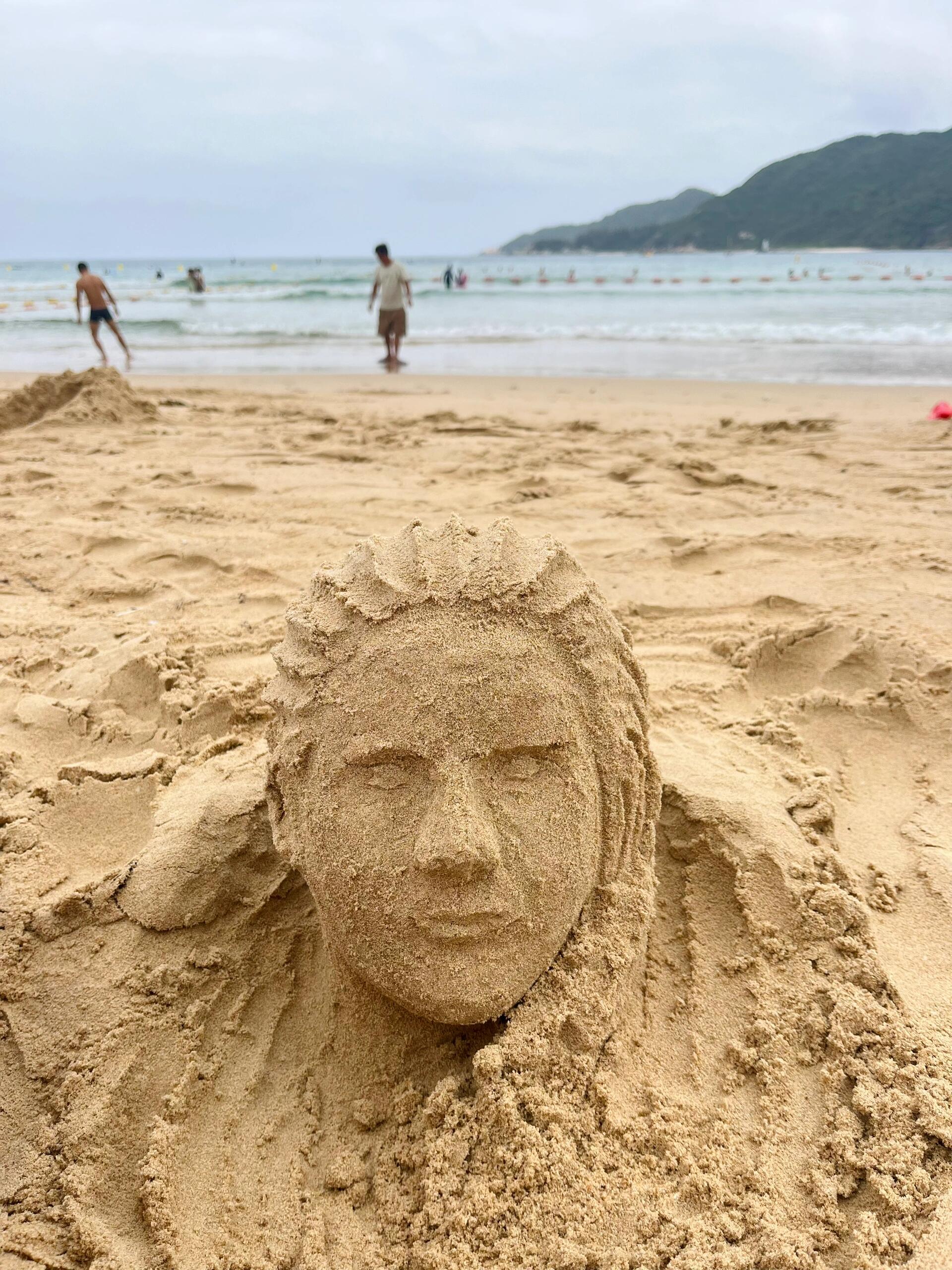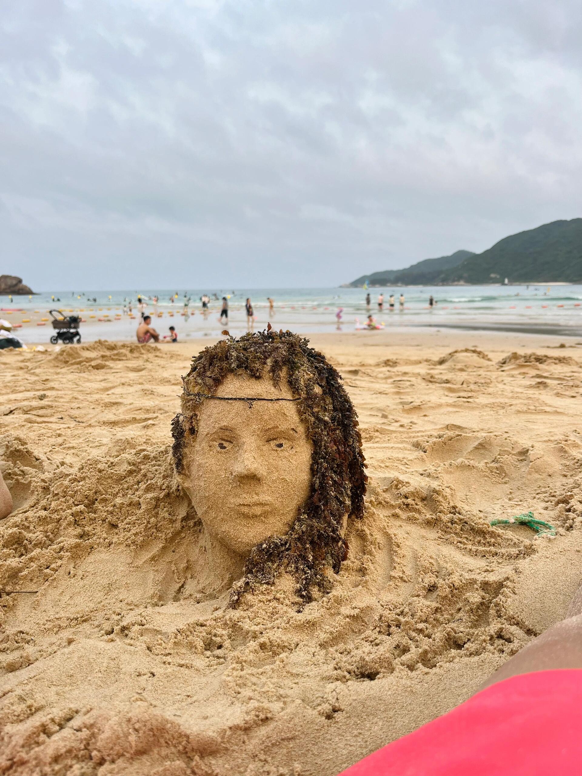 用海草和沙子堆一个海的女儿
