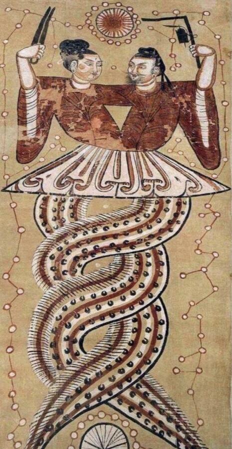 就拿咱们中国神话来举例子,女娲和伏羲,他们都是人首蛇身的神。