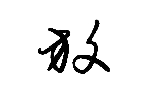 “放”是左右结构的字。左边部分“方”的写法用草书写法,先写横,再写弯竖钩,也就是将第一点与下面的横折钩连一个笔画来写,最后写一撇。左边写完再写右边反文旁“攵”。该字左右高度基本一致。
