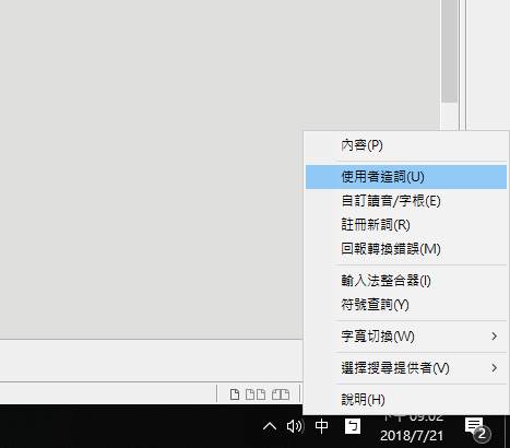 對著你的「中」按右鍵,就會看到使用者造詞了,給它點下去。