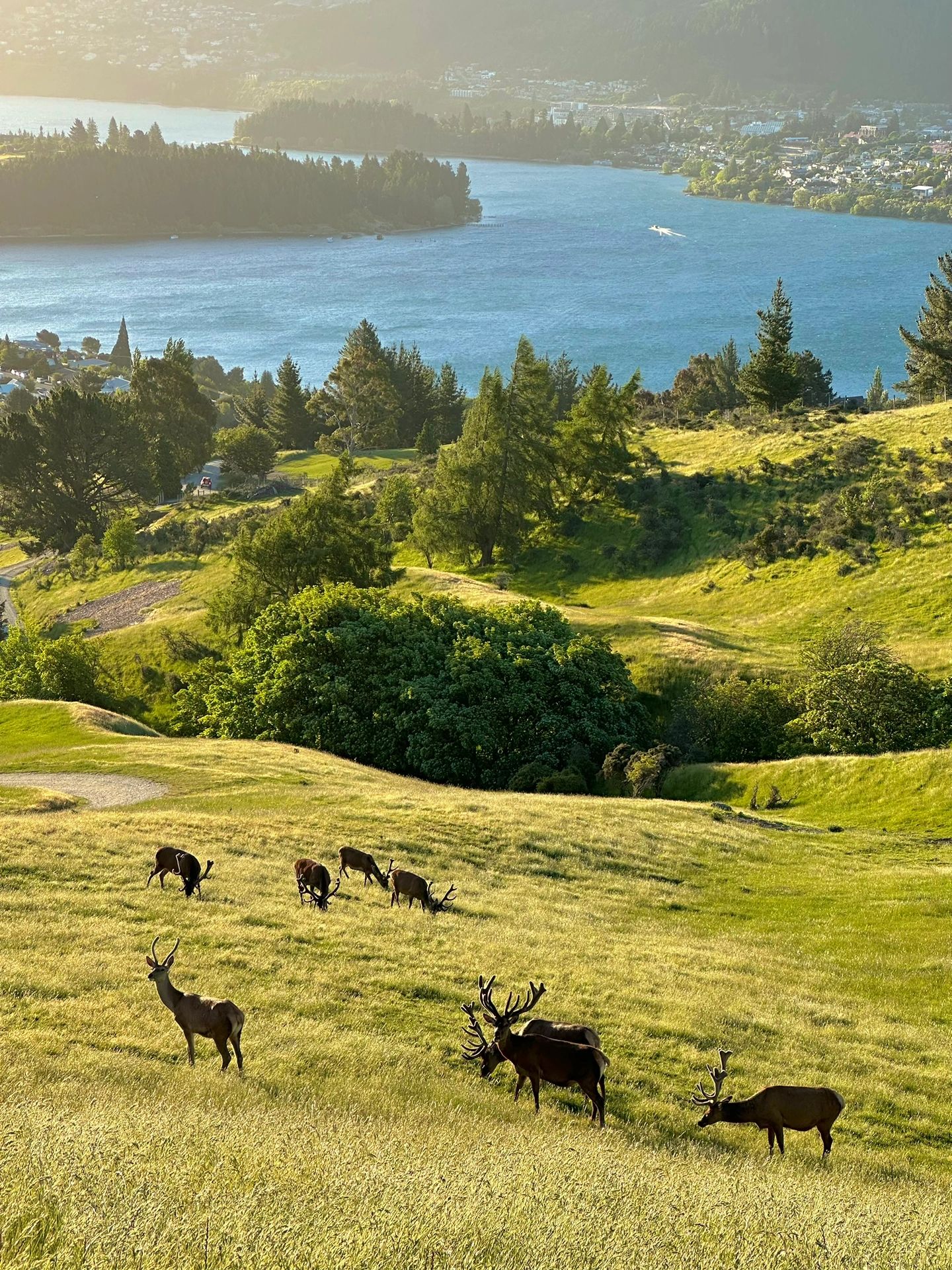 皇后镇的一个高山牧场看皇后镇全景,最重要还可以偶遇神圣高贵的鹿子!建议下午5点以后再上去,看完日落下山。开着车当鹿子出现在你窗前的那一刹那,你会发现这世间所有的偶遇都是温柔而美好,真的心都被融化了!