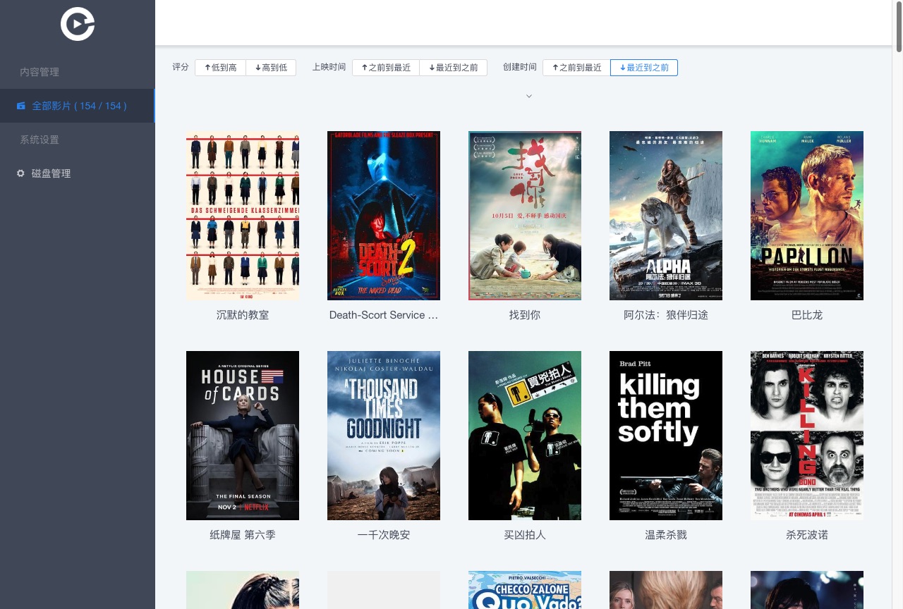 扫描完成之后,就可以看到海报自动列出,默认会根据文件的创建时间进行排序,选中之后会进入海报的详情页面。