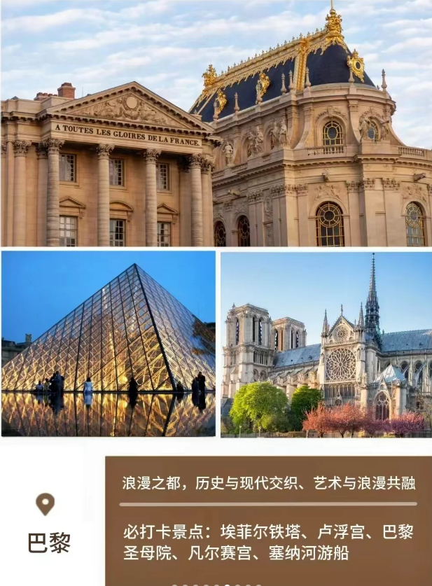 ✅必打卡景点:埃菲尔铁塔、卢浮宫、巴黎圣母院、凡尔赛宫、塞纳河游船