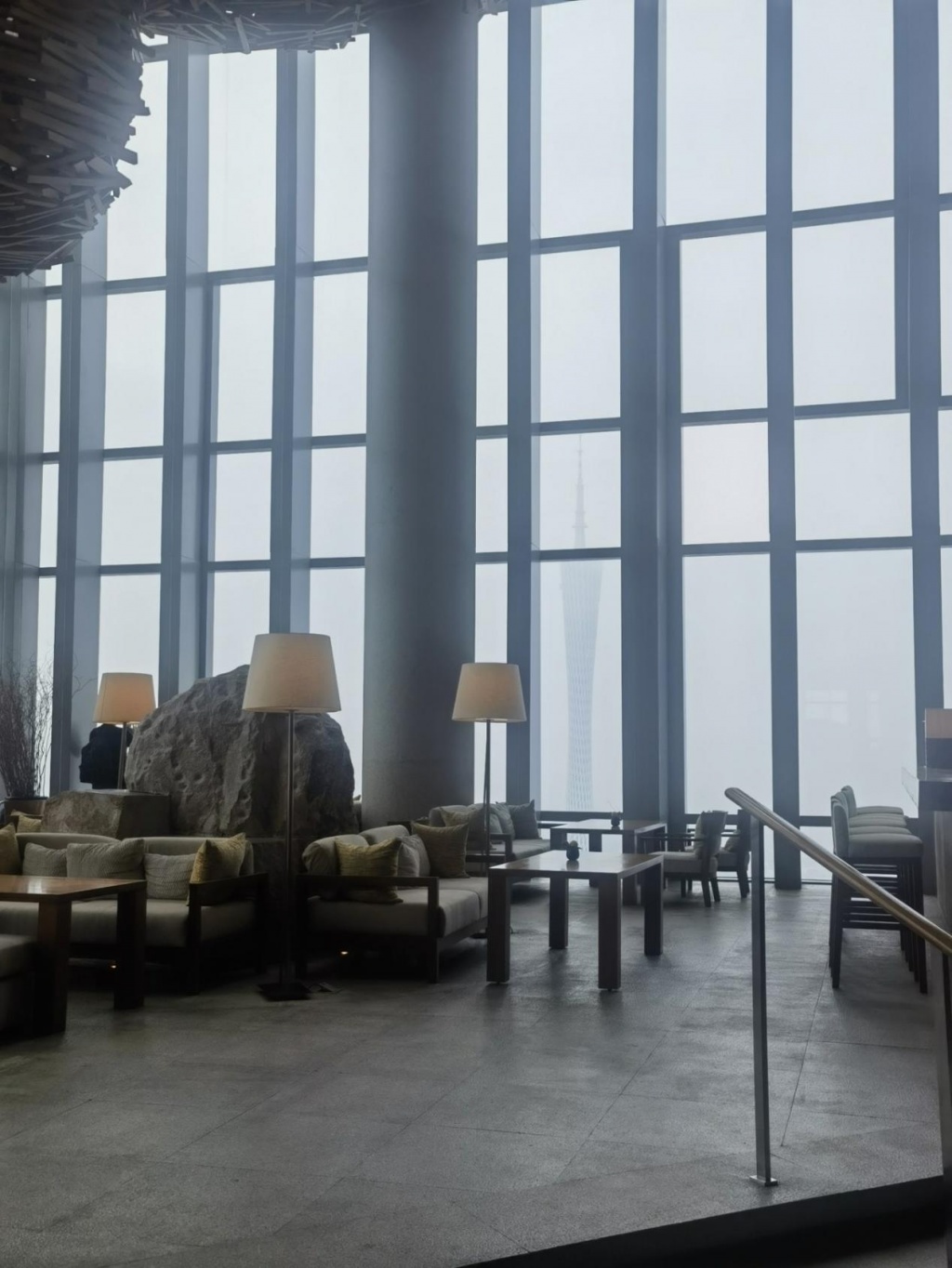 说一下酒店,我们订的是广州柏悦酒店,想定塔景房,结果又没订到,改定了园景房,酒店大堂在65楼,大堂就能看到,广州塔,可惜那天一直阴天,小蛮腰若隐若现,前台小哥人很好,帮我们加了张床。宝宝用品很全,得打电话问前台要,欢迎水果应有尽有。