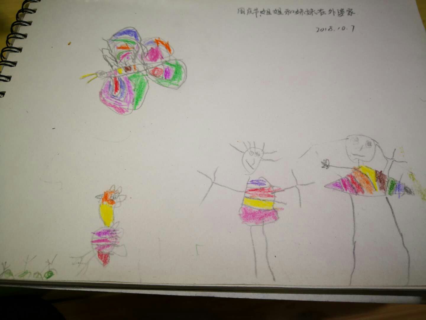 妈妈带着姐姐和妹妹,一起在外婆家呆了几天。