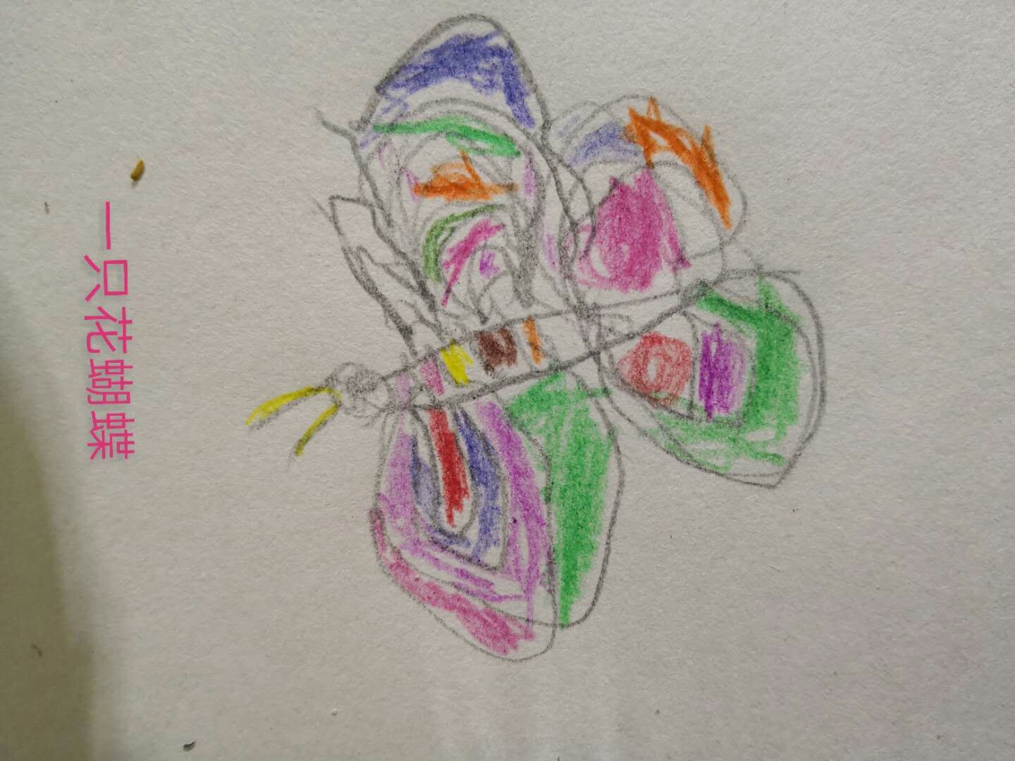 有一天,我看见一只蝴蝶在草丛里飞来飞去。蝴蝶可漂亮了,五颜六色的翅膀一扇一扇。