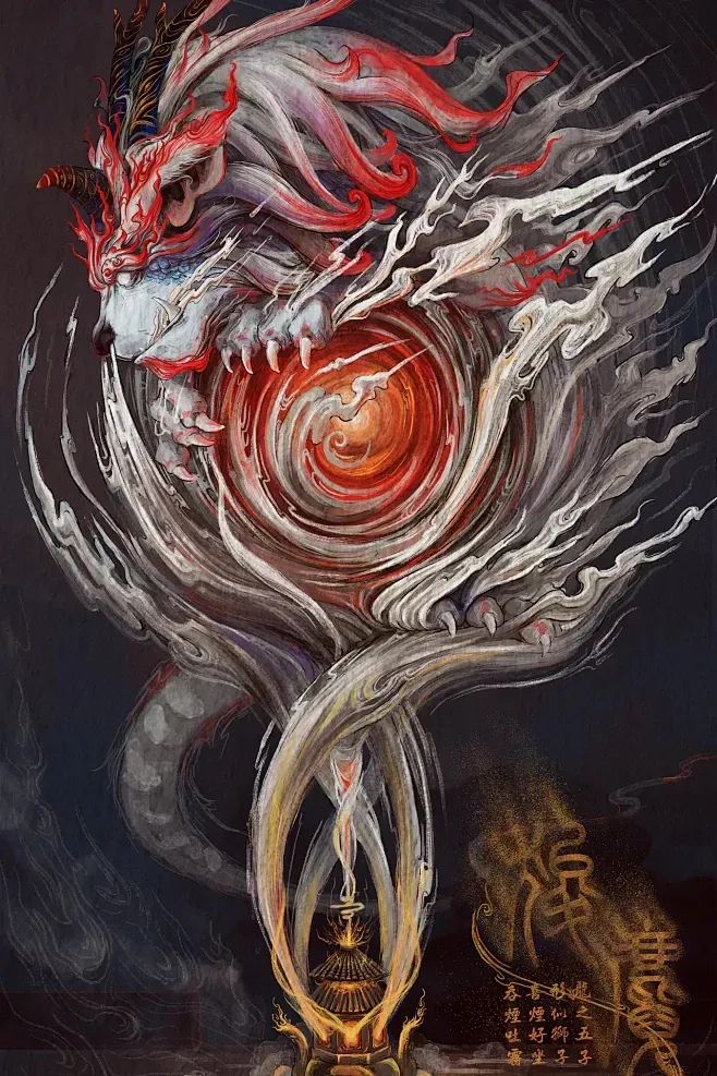 老五:狻猊(suān’ní)狻猊是龙的第五个儿子,也是鳞虫之长瑞兽。它的形象似狮子,喜欢烟雾和坐着,因此常被用来装饰香炉。古书记载狻猊是一种威武的猛兽,外形与狮子相似,能食虎豹,也是威武百兽的领袖。狻猊常出现在中国宫殿建筑、佛教佛像、瓷器香炉上。