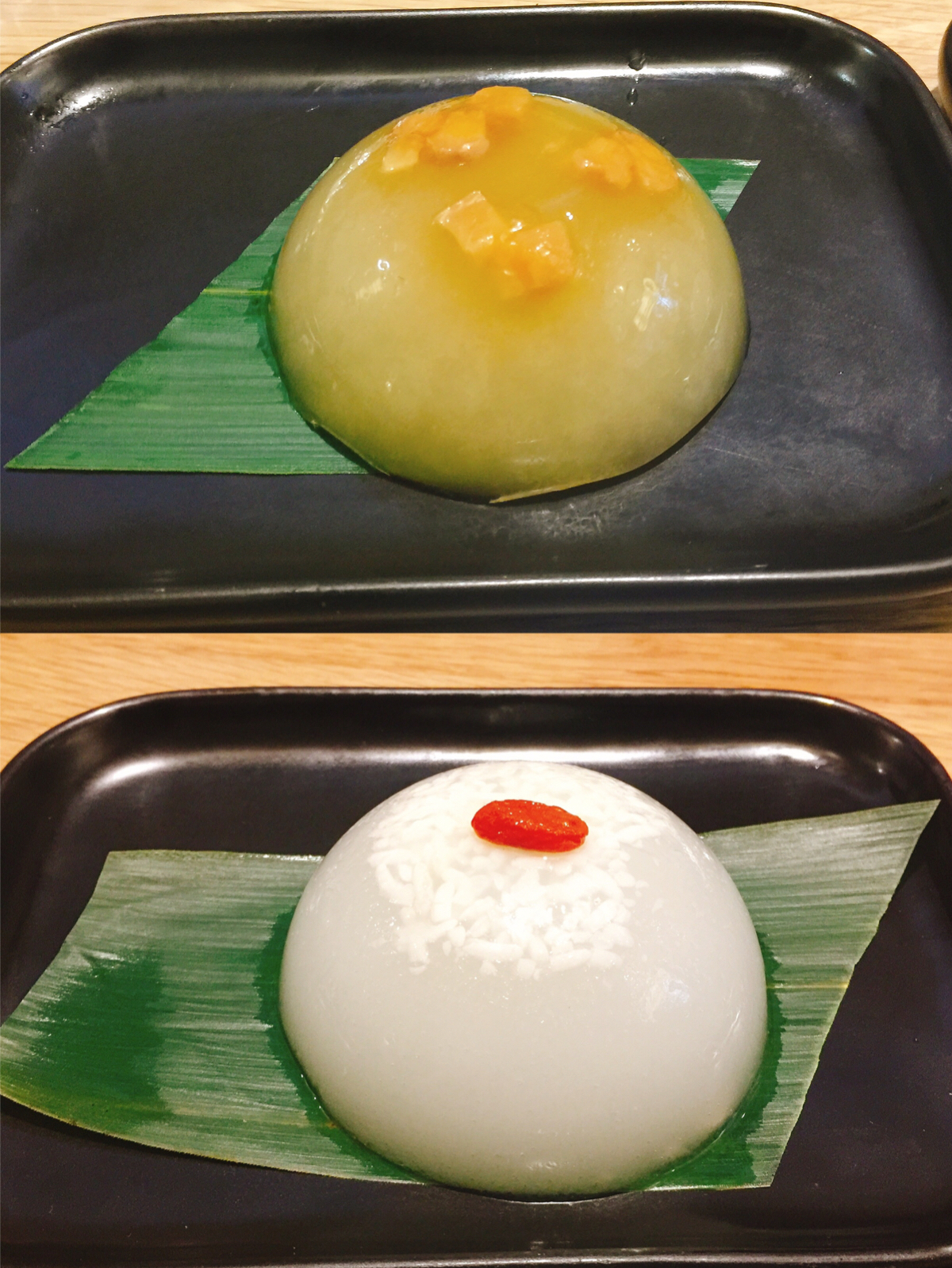 餐厅不大,最多坐十桌人,店内装饰也是很小清新。好了,让我们看看都有什么好吃的吧。甜点类点了自带爱心的酒酿冻和芒果冻,颜值在线。