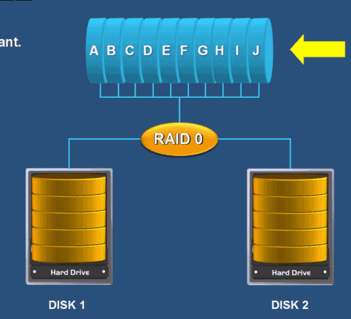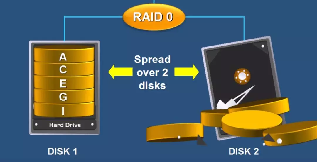 RAID 分好几个等级,我们先说 RAID 0 。