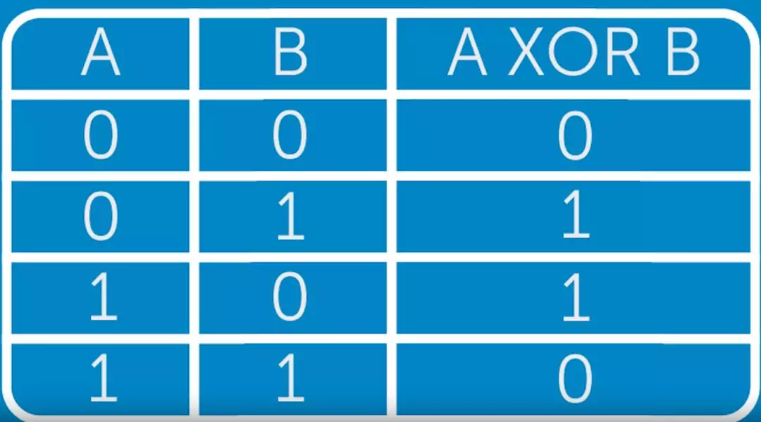 计算机数据无外乎 0 和 1 ,这些比特执行 XOR 操作以后,可以得到下面的结果↓