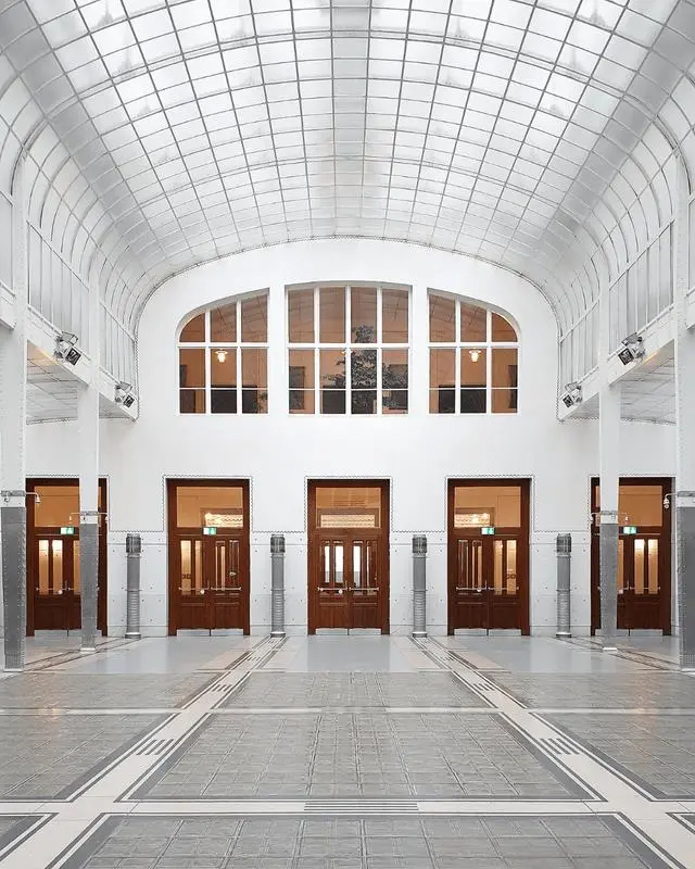 即使在瓦格纳最为激进的建筑————维也纳邮政储蓄银行的设计,也显示出瓦格纳对现代性的推崇与对传统的继承并不矛盾。1906年,邮政储蓄银行竣工时,奥托·瓦格纳已经65岁了,比大多数分离派艺术家都要年长。邮政储蓄银行的外观就像一个巨大的金属盒子,建筑的“现代性”表现在混搭使用的传统石材和新型建材作为立面的装饰——铝铆钉固定那些白色、抛光的大理石薄片。瓦格纳非常重视铝这种由奥地利化学家卡尔·约瑟夫·拜耳为工业生产而完善的新材料,他不仅将铝质材料用于铆钉,还用作建筑内外的其他装饰元素。邮政储蓄银行内部设计简洁、优雅、精致,特别是那座以钢架支撑着玻璃拱顶的银行大厅,其钢结构的纤细被如此美丽地表达。而玻璃天顶所创造的室内空间——就像弗兰克·劳埃德·赖特为芝加哥的鲁克里大厦(The Rookery)所设计的那样敞亮而现代。整个建筑的形式和功能和谐统一,在轻盈、简约的现代风格中蕴含着一份雄伟而雅致的古典气息。