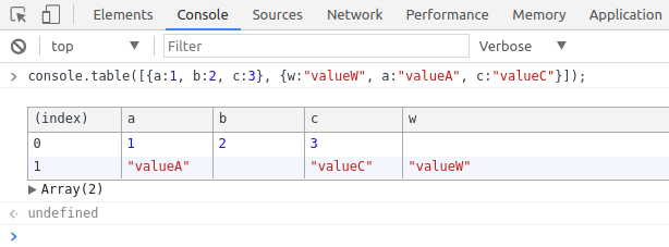 Console.table