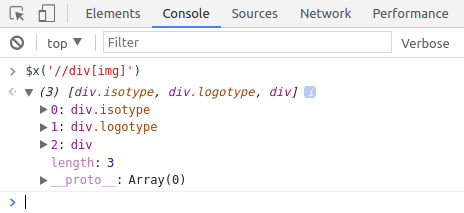$x(path) 返回与给定的XPath表达式匹配的DOM元素数组。