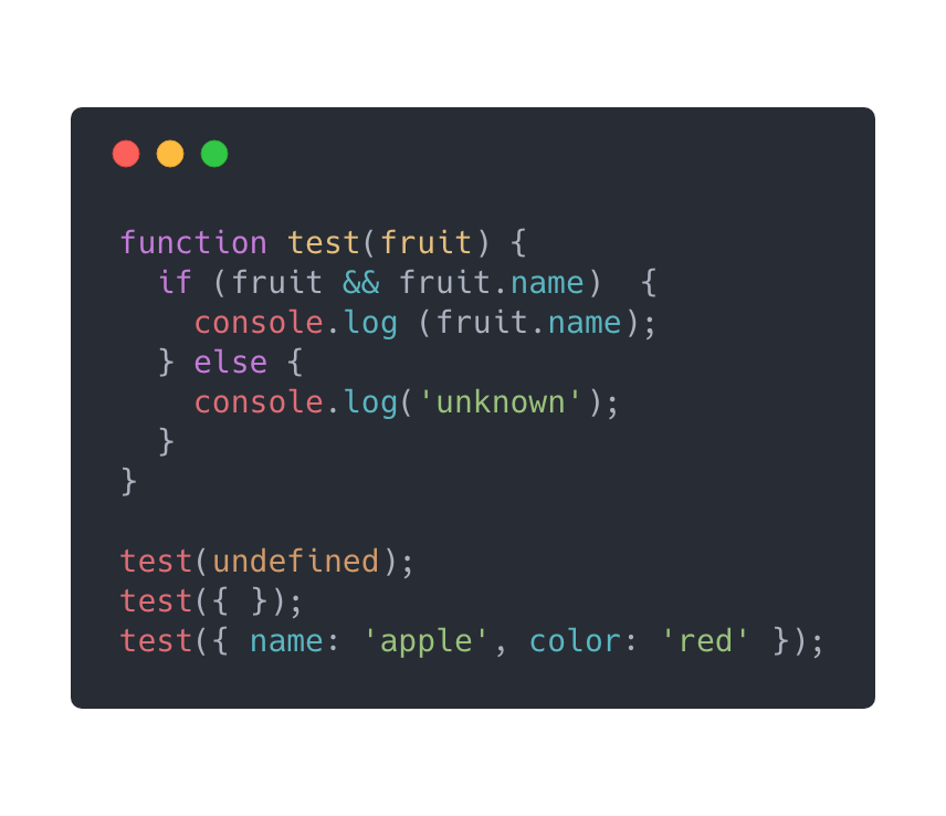 看一下上面的代码,是不是很熟悉,当有水果名的时候我们要去打印出来,否则就打印’unknown’。其实我们是可以用默认参数加结构去避免这种写法的: