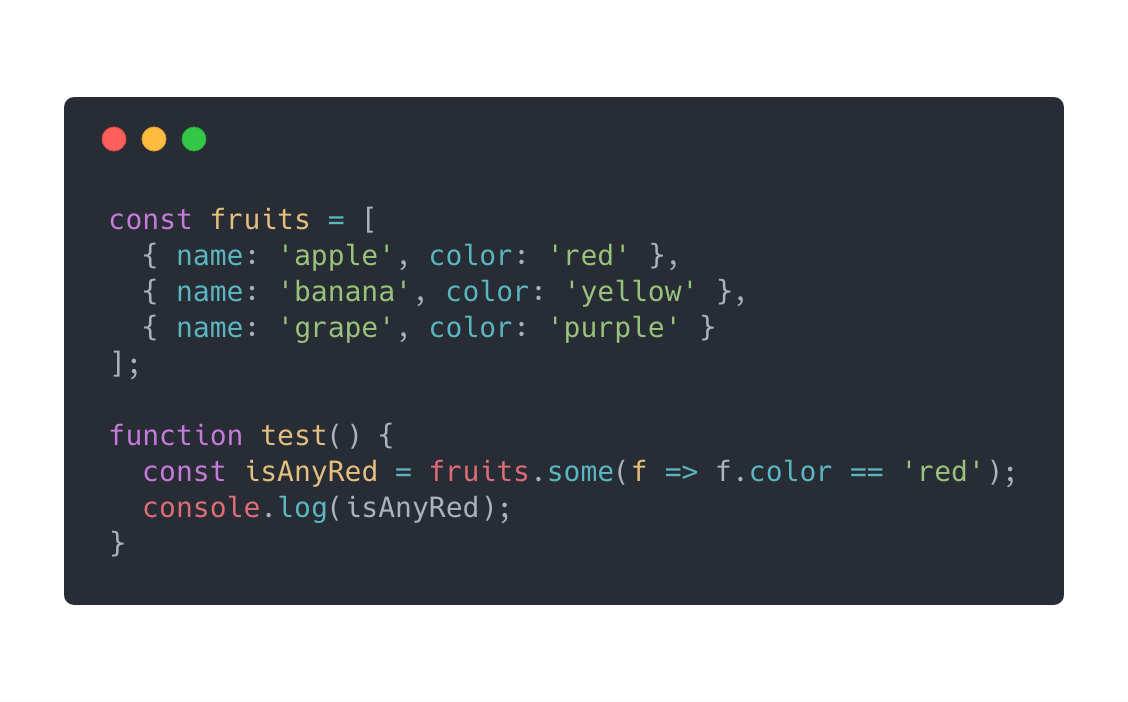 这样看起来是不是简洁多了?同理,如果我们要检查所有水果中有没有包含红色的水果,我们可以这样做: