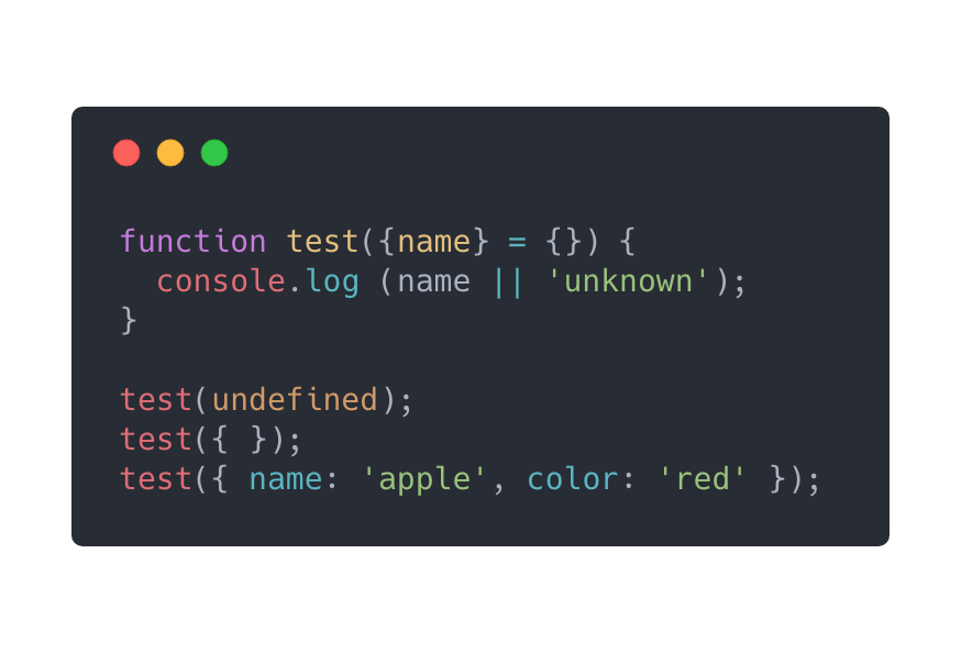 当我们需要从fruit对象中拿name属性的时候,我们可以用{name}来结构参数,然后我们就可以在接下来的函数作用域中用name这个变量来取代fruit.name了。
