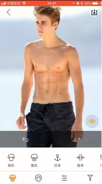 没有健身居然有整身肌肉,怎么做到的?sadboy (36)in #cn • 8 years ago 首先,我们需要下载一个新的APP 有型 打开有型 添加照片 点击胸肌,选择自己喜欢的胸型 通过4个锚点调整胸肌的位置 点击右下角的魔棒按钮 然后返回 我们再用相同的方法制作腹肌 返回,点击增肌 调整参数,使肌肉饱满 除了调整肌肉 有型还有胡须,纹身,发型等功能 如果想改变造型或者发型的男士 可以先用它试试看效果哦 感觉挺实用的 这样我们的照片就完成啦 #photo #teacher #life